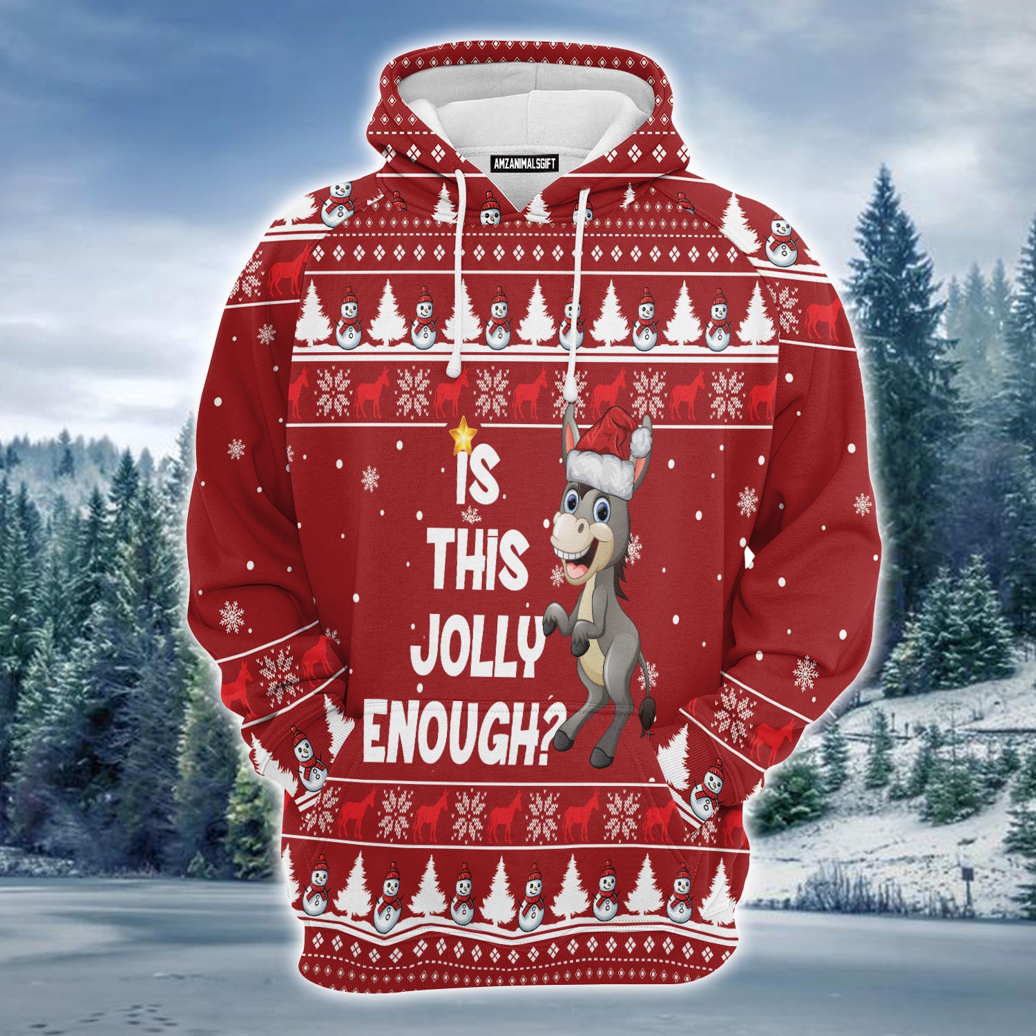 Donkey Is This Jolly Enough Premium Christmas Hoodie, Snowman Pattern Unisex Hoodie For Men & Women - Perfect Gift For Christmas, Friends, Family.