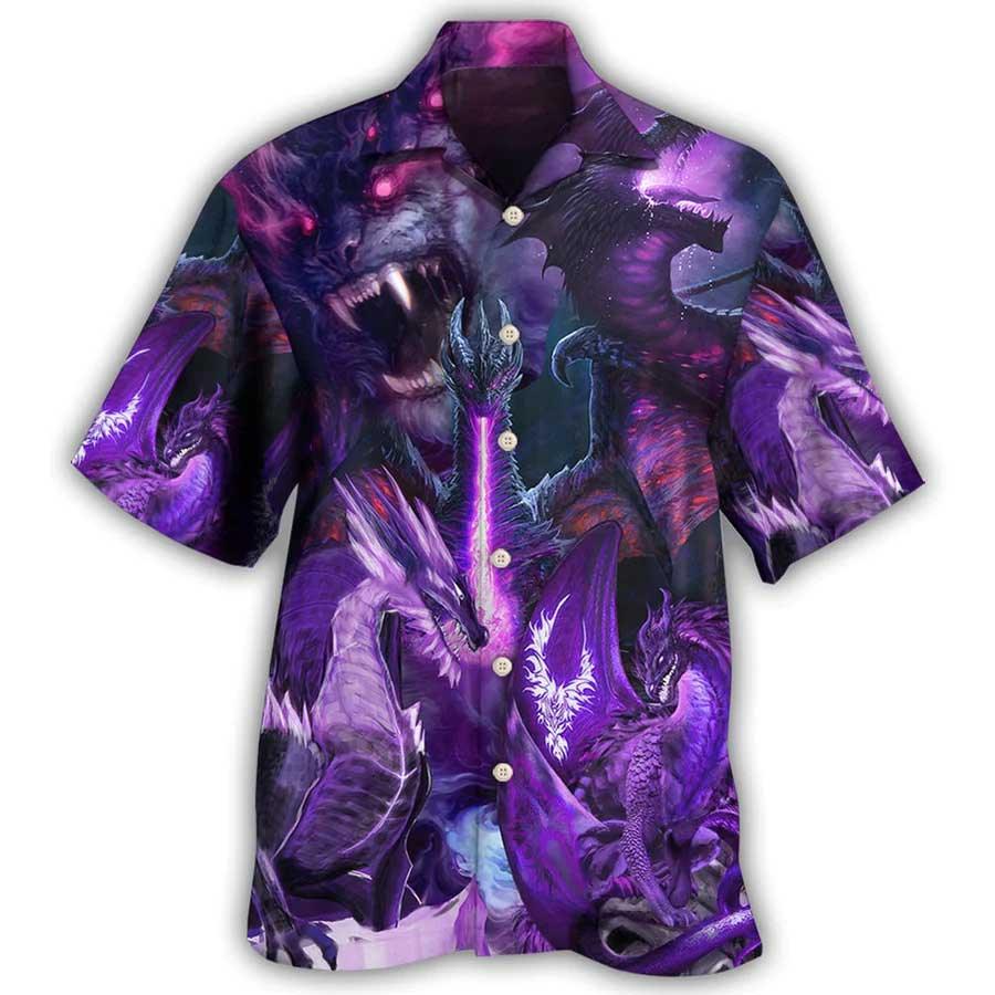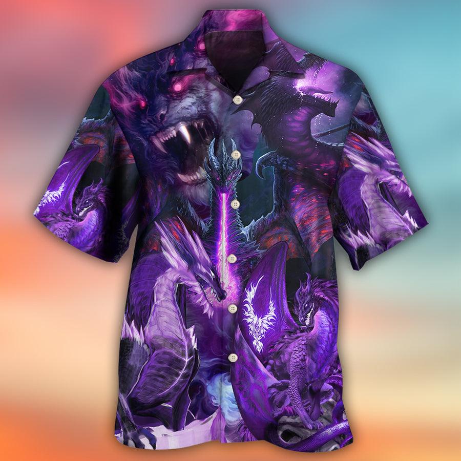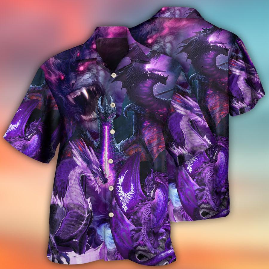 Dragon Aloha Hawaiian Shirt For Summer, Dragon Dark Purple Lightning Art Style Hawaiian Shirts Outfit For Men Women, Dragon Lovers