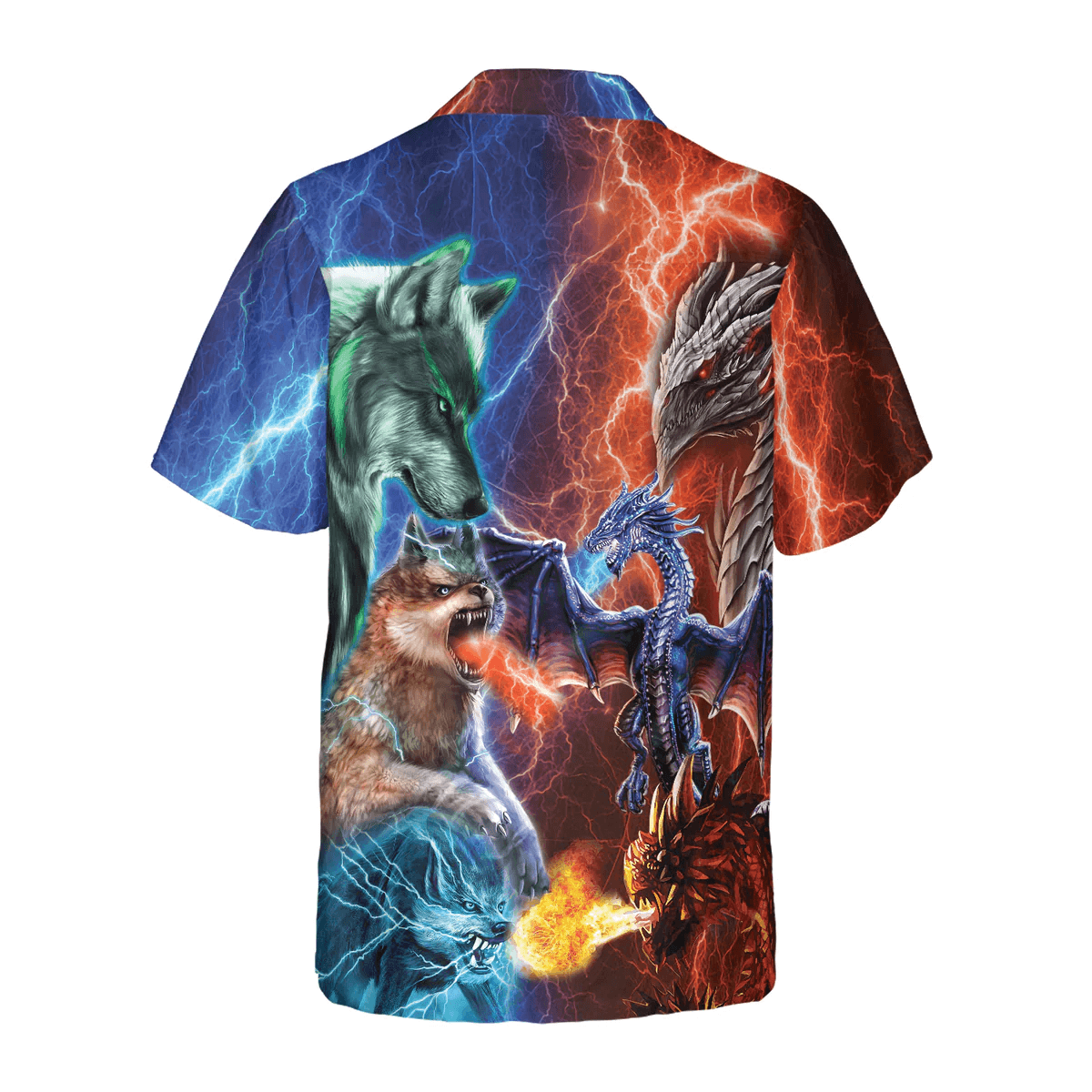 Dragon Hawaiian Shirt - Dragon Vs Wolves Hawaiian Shirt - Perfect Gift For Husband, Boyfriend, Friend, Family