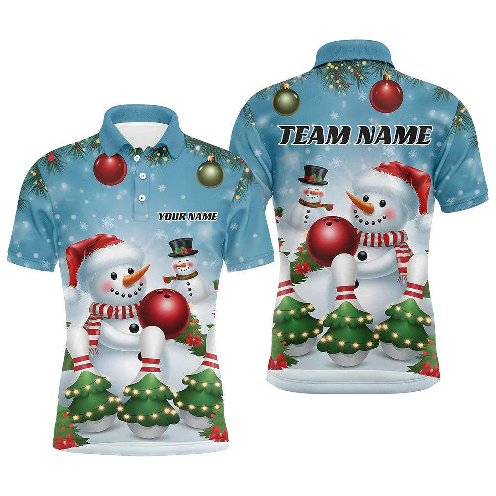 Custom Bowling Team Uniform Jersey Funny Christmas Snowman Bowling Shirts, Christmas Bowling Tournament Outfits - Personalized Name And Team Name