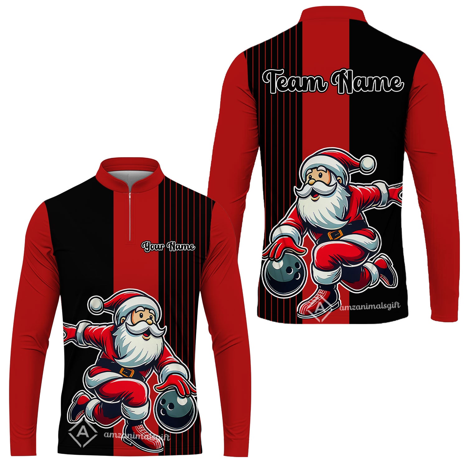 Custom Bowling Uniforms Christmas jerseys Funny Santa Bowling polo, Bowling Shirts Personalized Name And Team Name