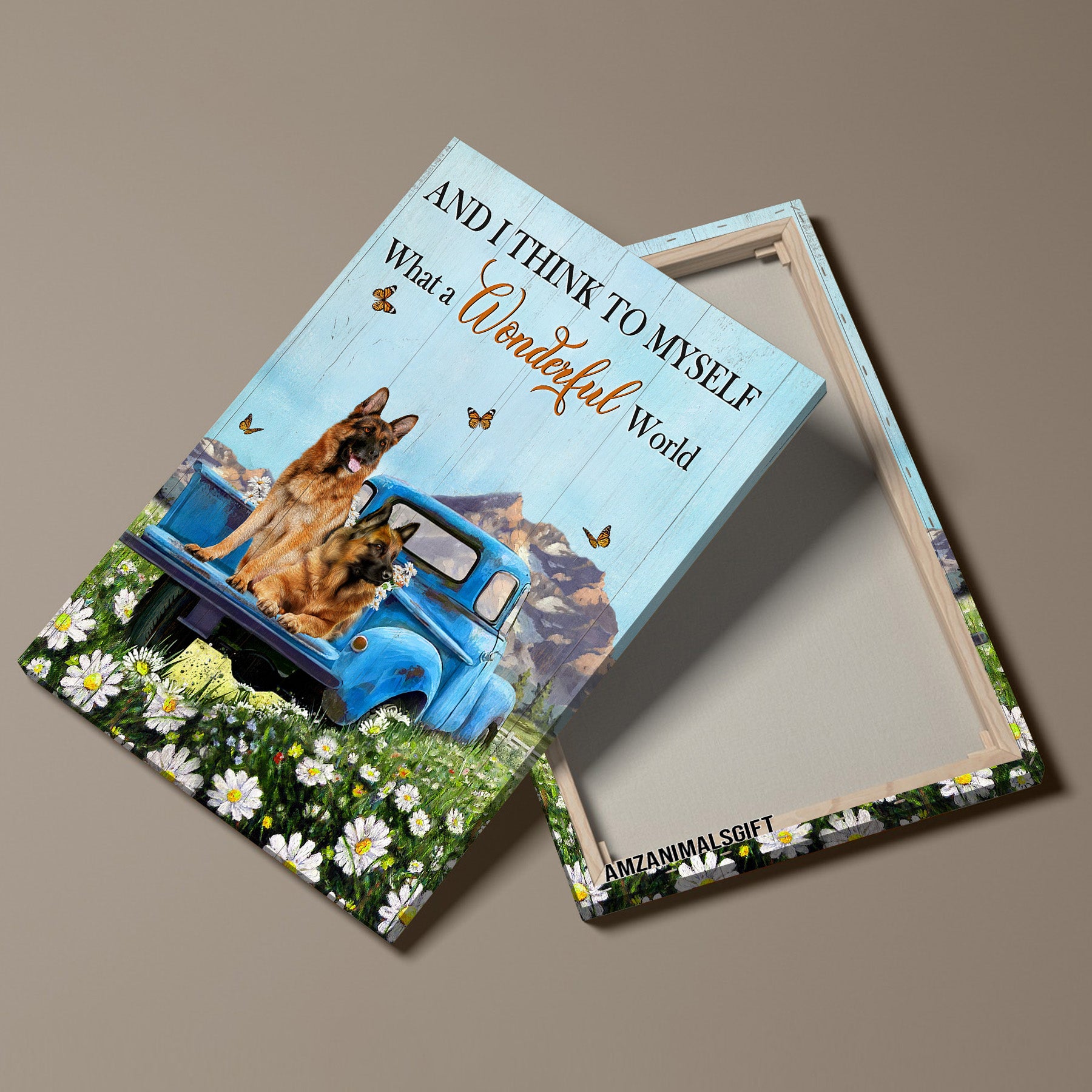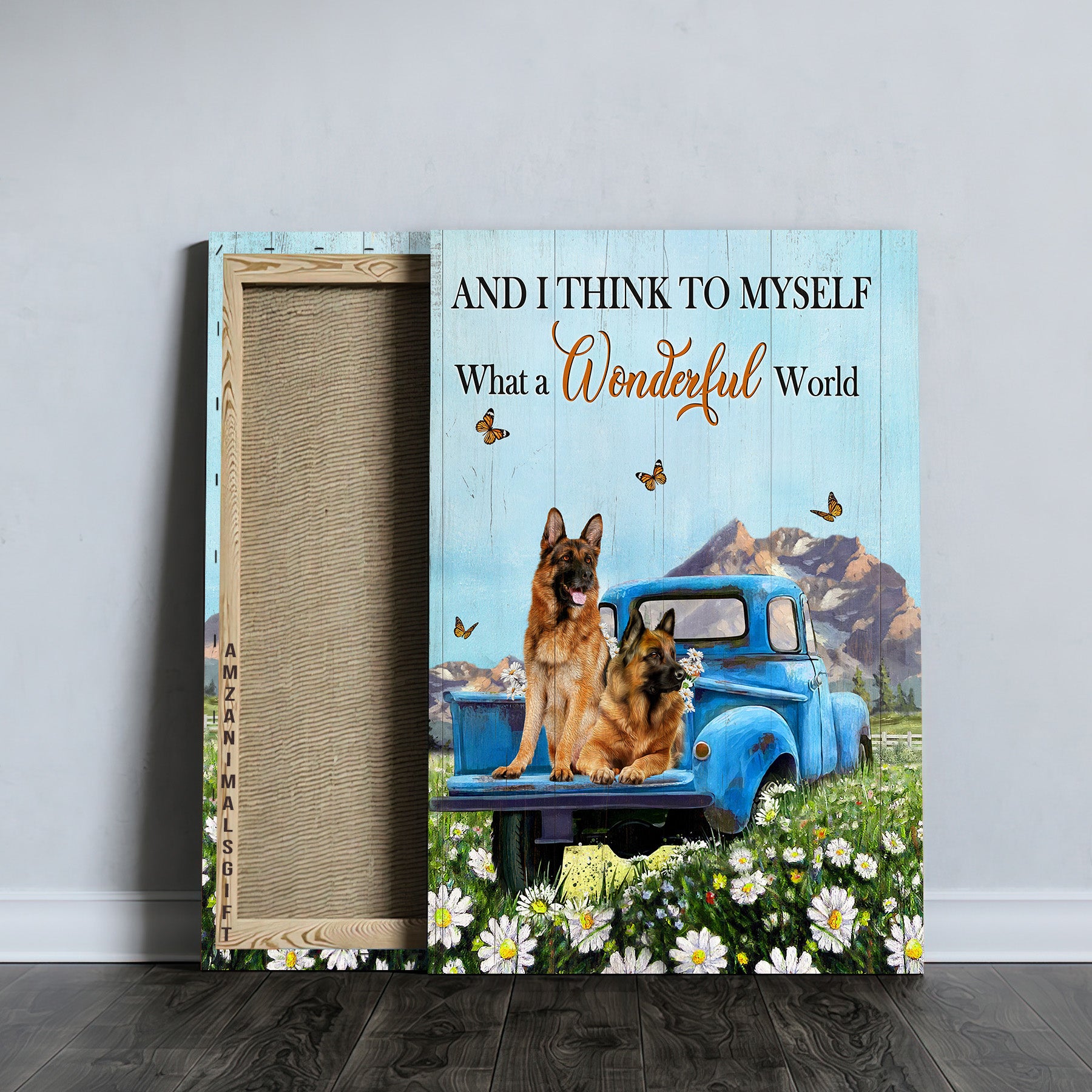 German Shepherd Premium Wrapped Portrait Canvas - Daisy Field, German Shepherd Dogs, Ladybug Car, What A Wonderful World - Gift For Dog Lovers