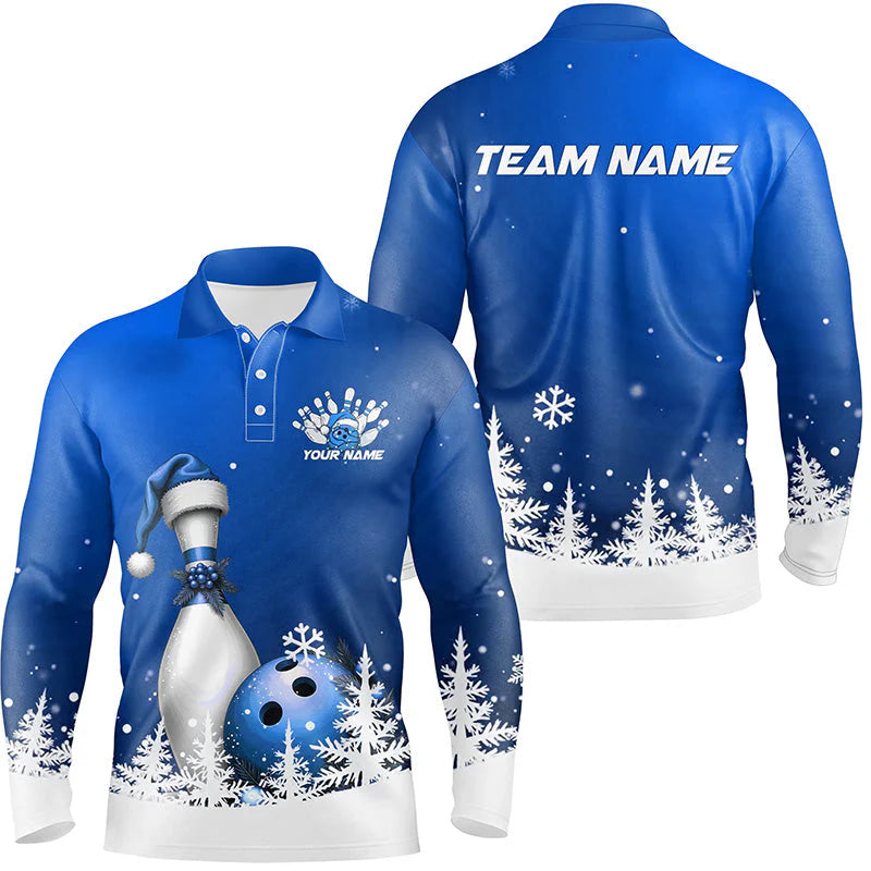 Snowflake Custom Christmas Bowling Team Polo Shirt, Christmas Bowling uniforms - Bowling Shirts Personalized Name And Team Name
