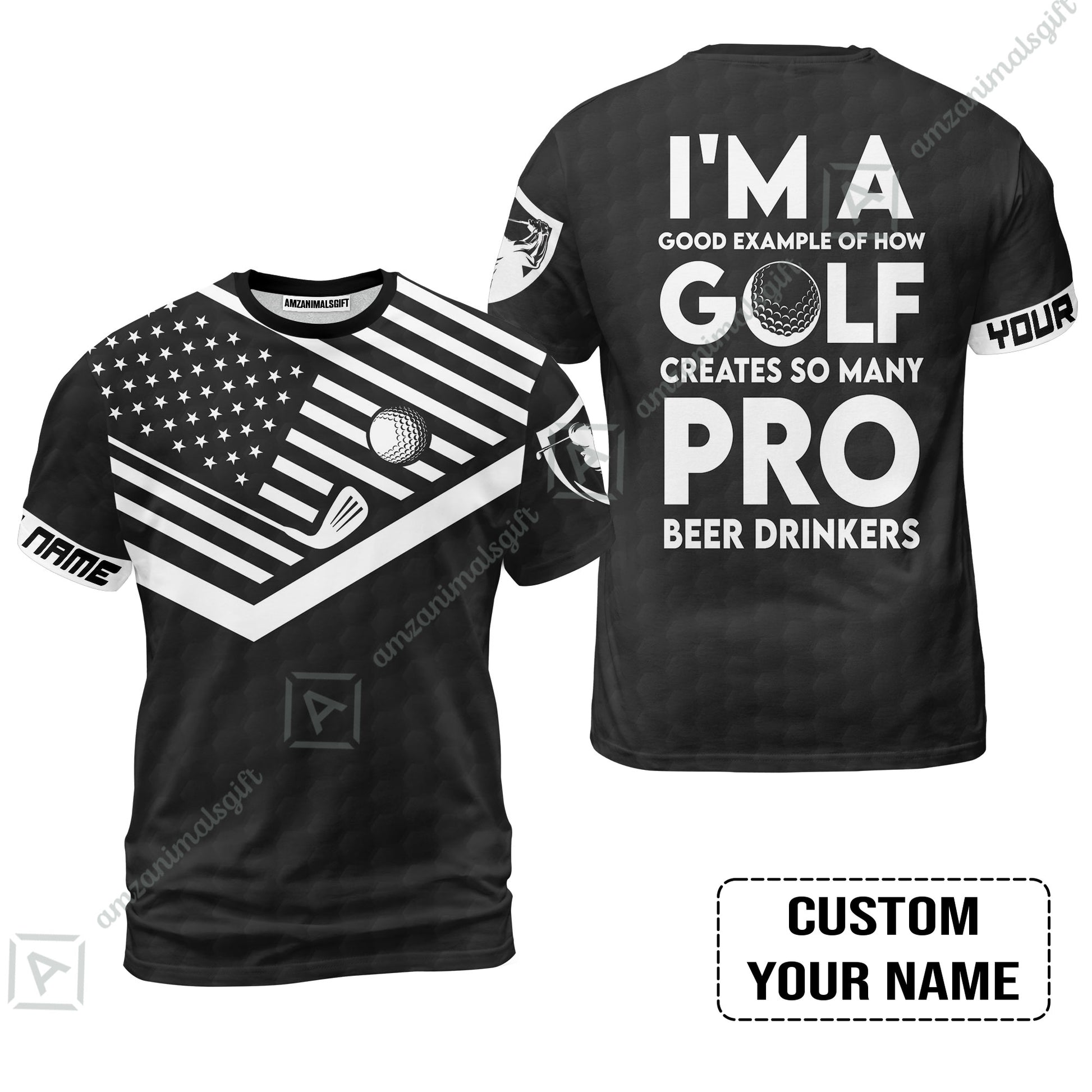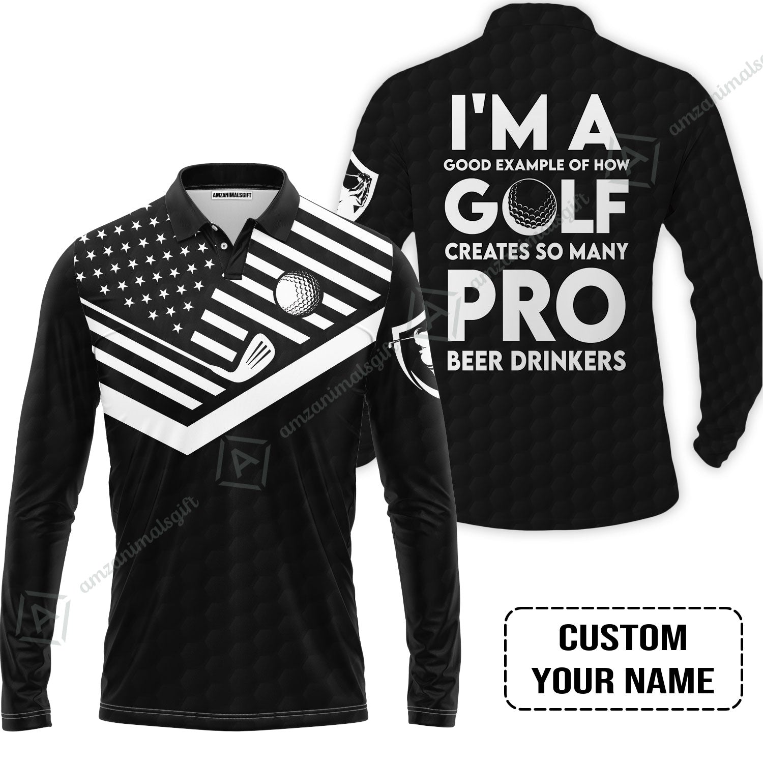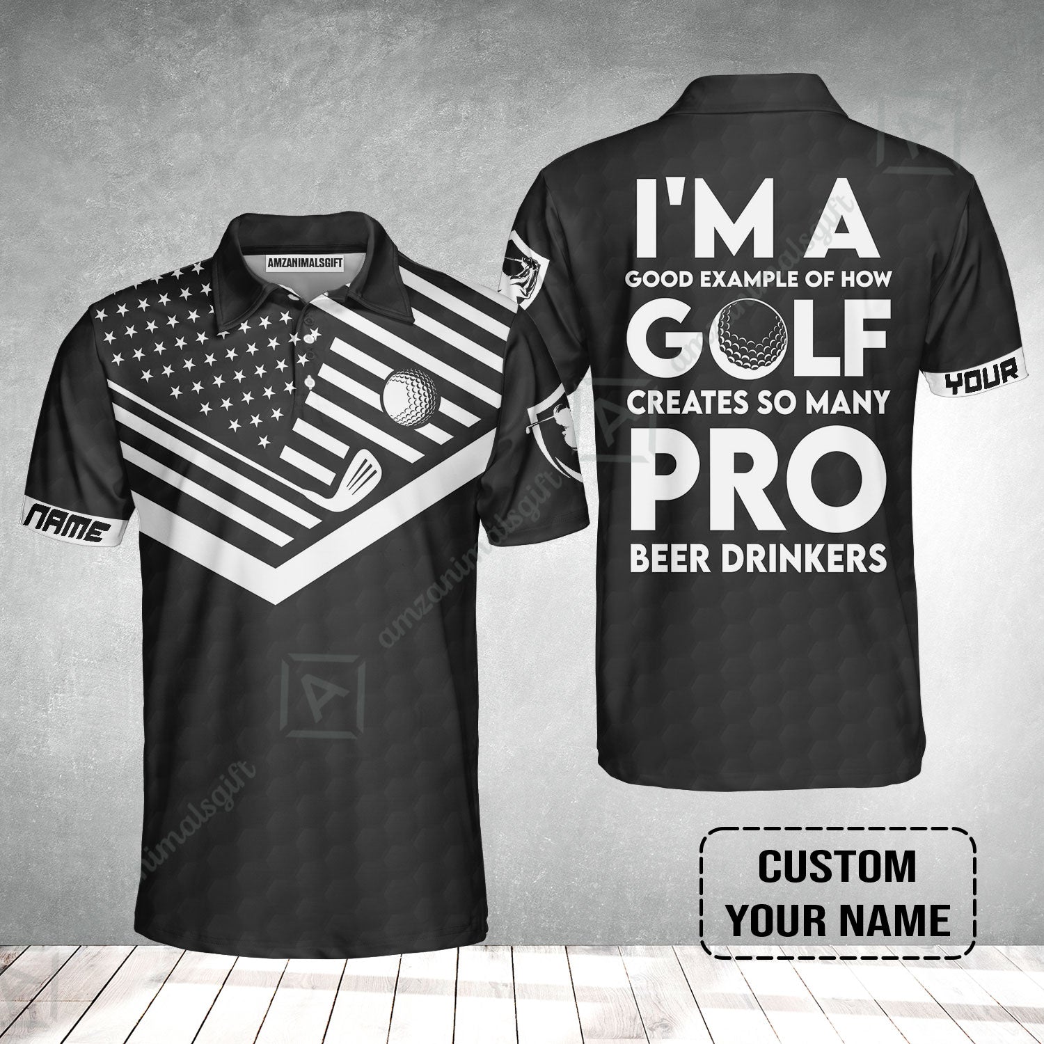 Personalized Golf American Flag Men Polo Shirt, I'm A Golf Pro And Beer Drinker Custom Polo Shirt