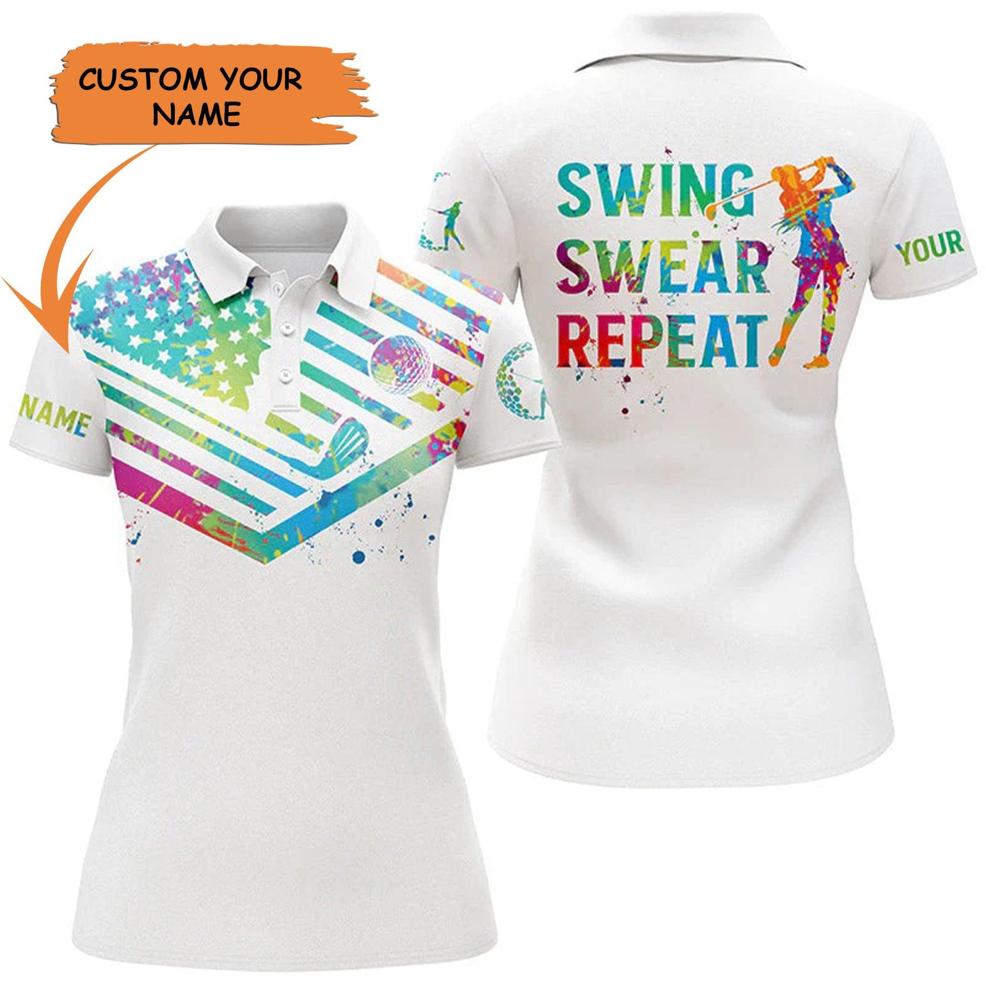 Golf Custom Name Women Polo Shirt, Watercolor US Flag White Background Personalized Women Polo Shirt - Perfect Gift For Ladies, Golf Lovers, Golfers