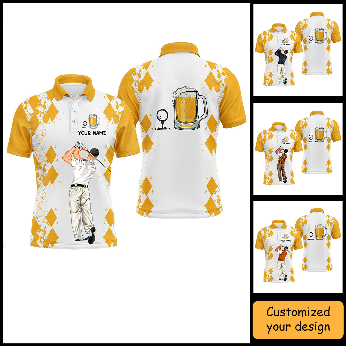Golf Custom Polo Shirt, Argyle Pattern Beer Golf Personalized Golf Polo Shirt
