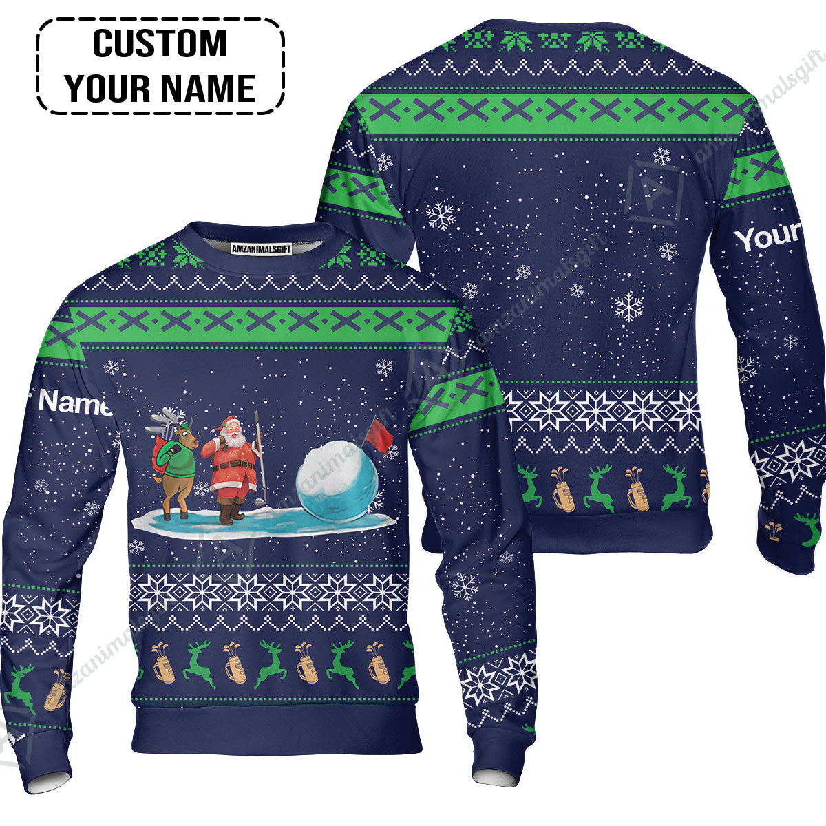 Golf Hoodie - Funny Ugly Christmas Pattern Custom Name Apparel - Personalized Gift For Golf Lover, Men, Team, Husband, Boyfriend