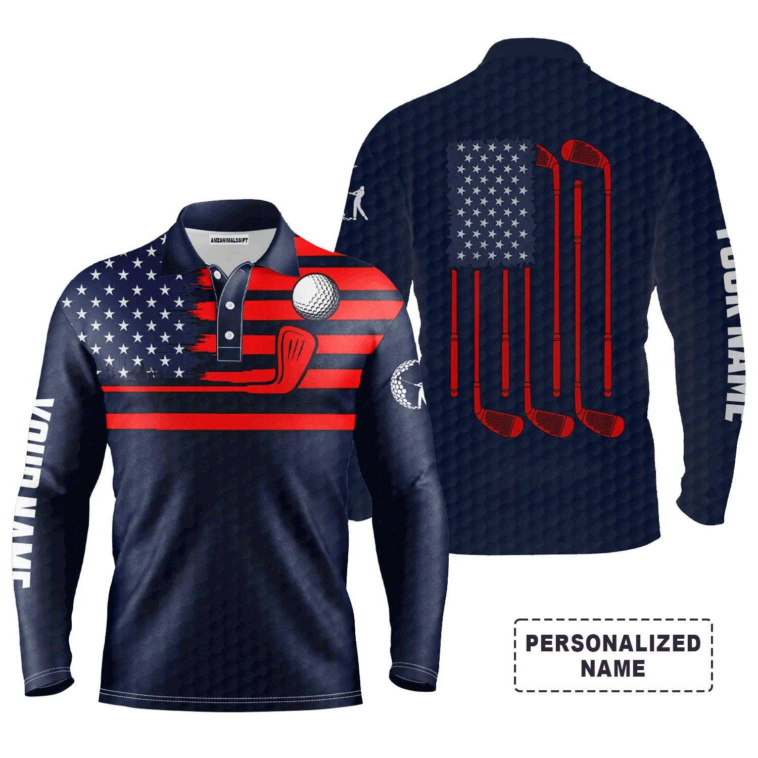 Golf Men Polo Shirt - Custom Name American Flag Patriotic Apparel - Personalized Sports Gift For Golf Lover, Male, Husband, Boyfriend