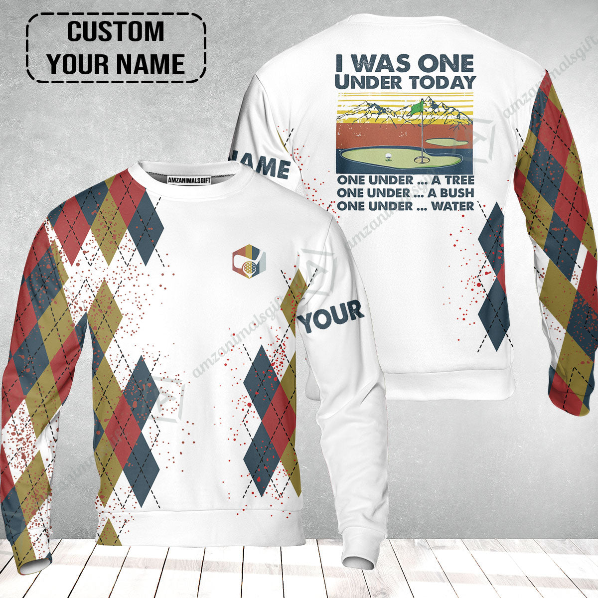 Golf Sweatshirt Custom Name - I Was One Under Today One Under A Tree Bush and Water