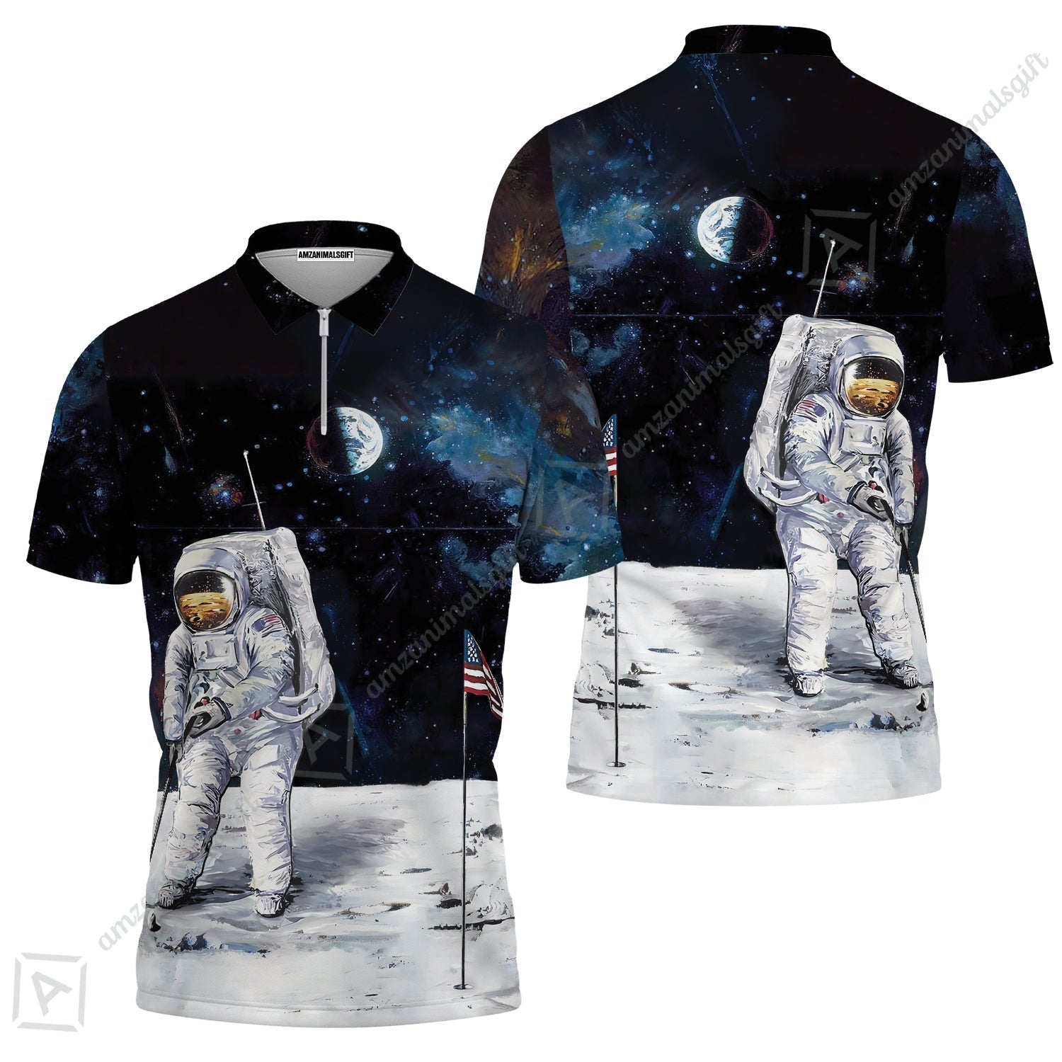 Golf Women Polo Shirt - Astronaut Moon Golf Men Polo Shirt, American Flag Women Polo Shirt