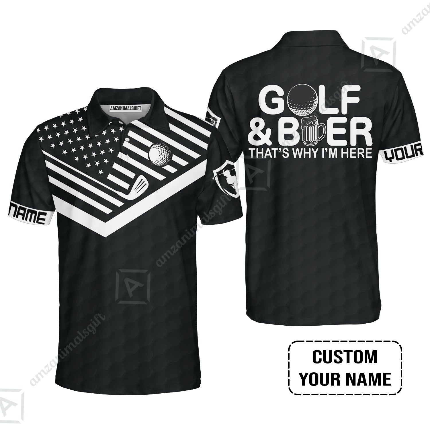 Golf Women Polo Shirt - Personalized American Flag Golf Women Polo Shirt, Golf And Beer That's Why I'm Here Custom Shirt