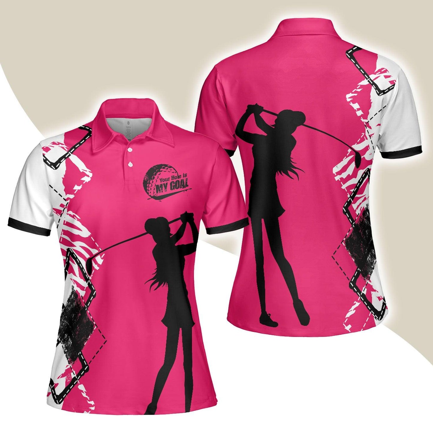 Golf Women Polo Shirt - Your Hole Is My Goal Golf Women Polo Shirts, White And Pink Golf Shirt For Ladies - Perfect Gift For Women, Golfer, Golf Lover