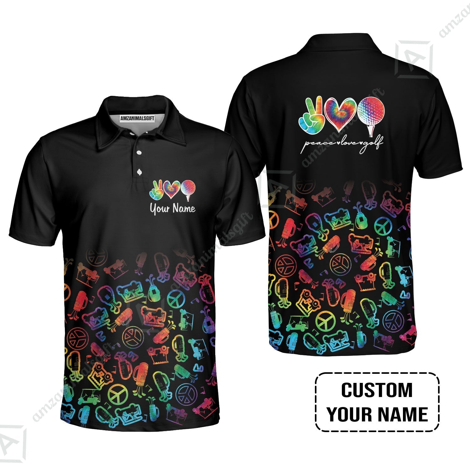 Golf Women Sleeveless Polo Shirt Custom Name, Watercolor Peace Love Golf Golf Icon Personalized Polo Shirt