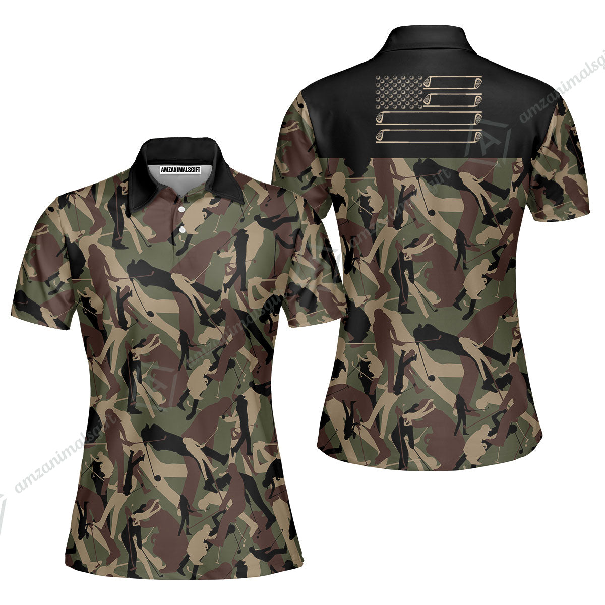 Golf Women Sleeveless Polo Shirt - Golf Camouflage Pattern Golf Women Polo Shirt, Military Golfing Women Polo Shirt, Camo Golf Shirt