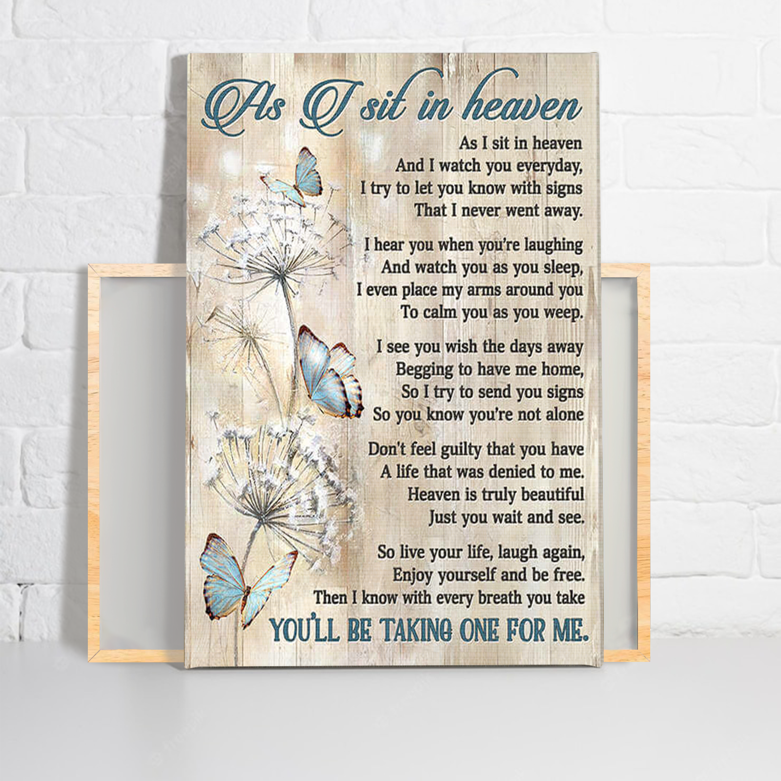 Heaven Portrait Canvas, As I Sit In Heaven Canvas, Butterfly & Dandelion Canvas, Perfect Gift For Friends, Family