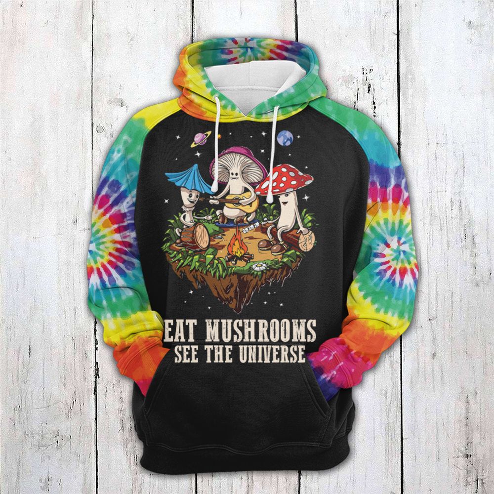 Hippie Mushrooms Pullover Premium Hoodie Eat Mushrooms See The Universe, Perfect Outfit For Men And Women On Christmas New Year Autumn Winter
