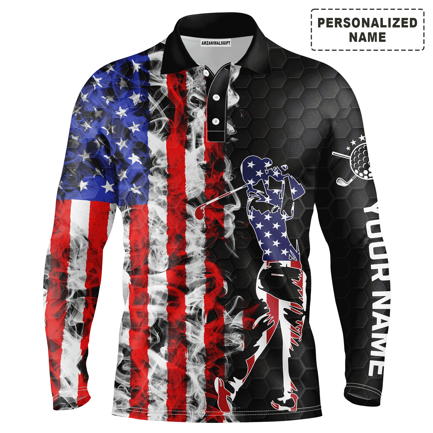 Men Golf Polo Shirt - Custom Name American Flag Black Apparel Men Golf Polo Shirt - Perfect Polo Shirt For Men, Golfers