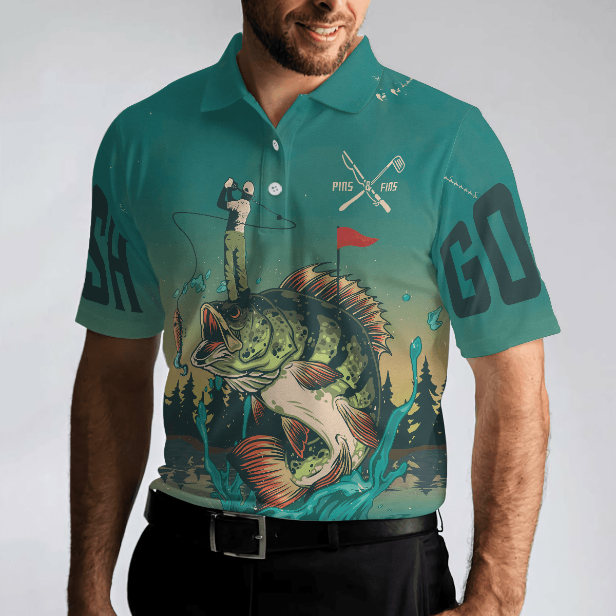 Men Golf Polo Shirt - Fly Fishing And Golf Men Polo Shirt, Fish On Golf On Pa-Pow Fishing Men Polo Shirt - Perfect Polo Shirt For Men, Golfers