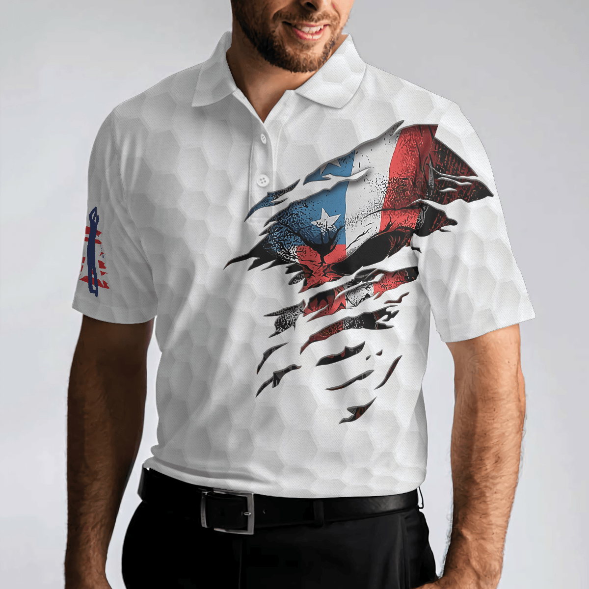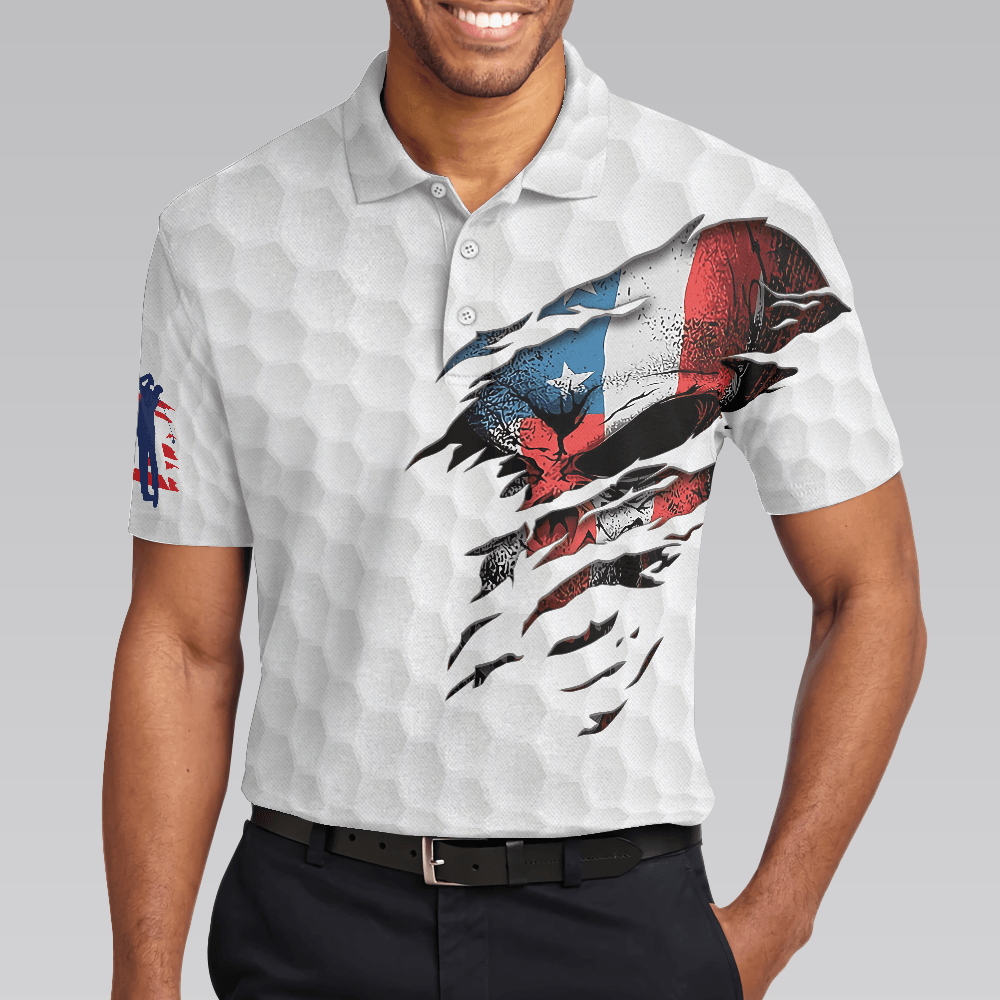 Men Golf Polo Shirt - Golf Skull American Flag Polo Shirt, White Golf Pattern Polo Shirt, Patriotic Golf Shirt For Men, Best Gift For Golfers