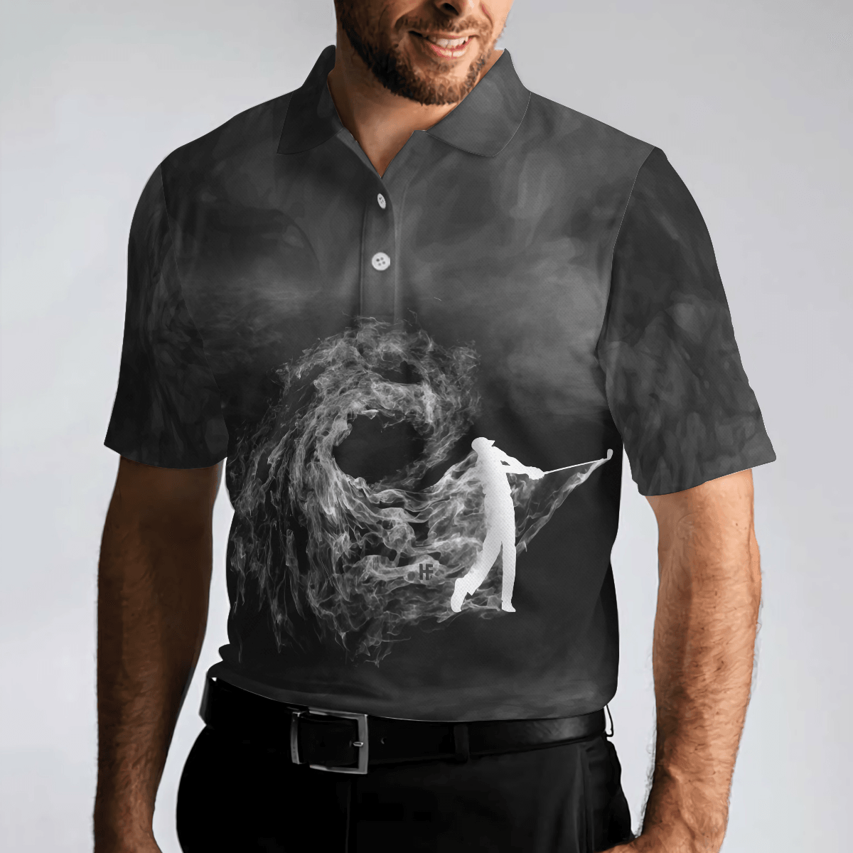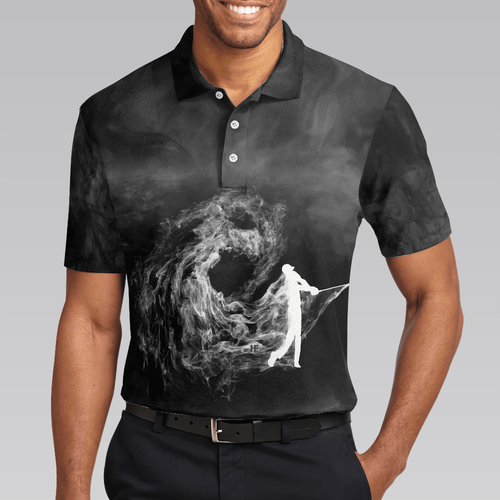 Men Golf Polo Shirt - Golfer On Smoke Background Men Polo Shirt, Black Smoke Golfing Polo Shirt, Best Golf Shirt For Men, Golfers