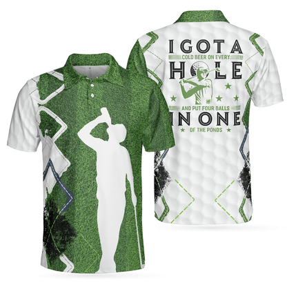 Men Golf Polo Shirt - Green Argyle Golf Men Polo Shirt, I Got A Cold Beer On Every Hole In One Men Golf Polo Shirt - Perfect Polo Shirt For Men