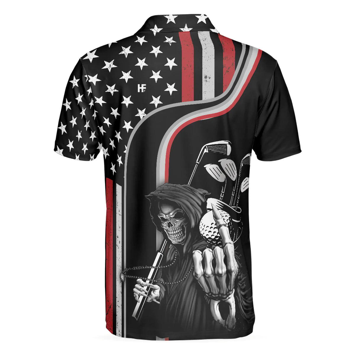 Men Golf Polo Shirt - Reaper American Flag Golf Polo Shirt, Black Theme Reaper Golfer Golf Shirt For Men - Gift For Men, Golfer