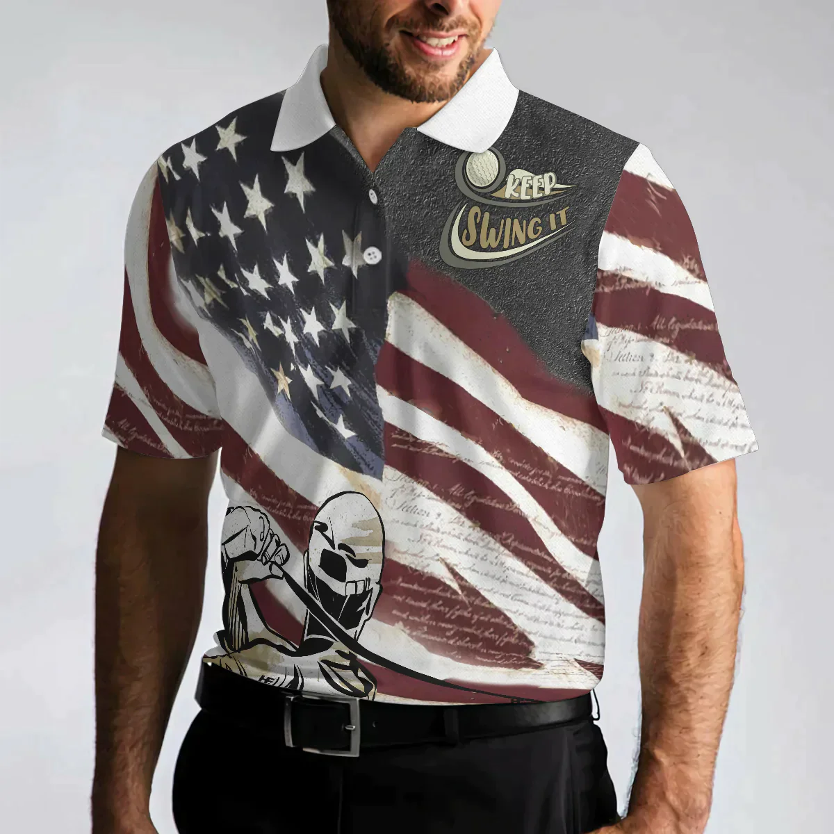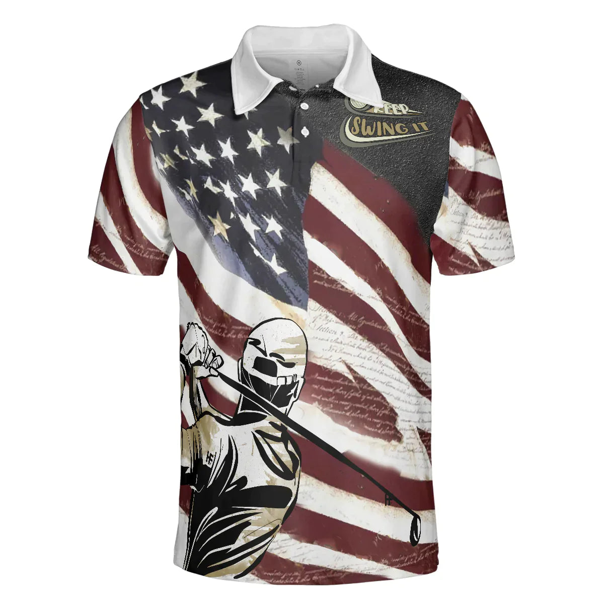 Men Golf Polo Shirt - USA Flag Men Polo Shirt, Keep Swing It American Flag Golf Club Polo Shirt - Perfect Gift For Men, Golfers