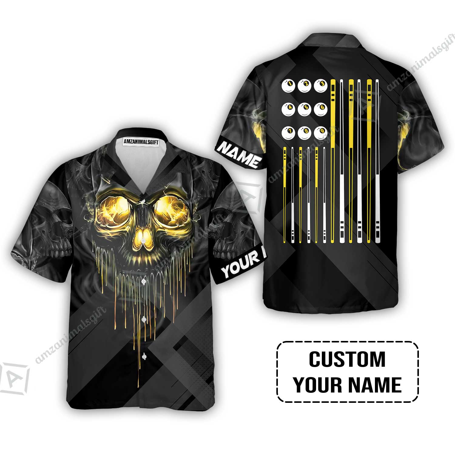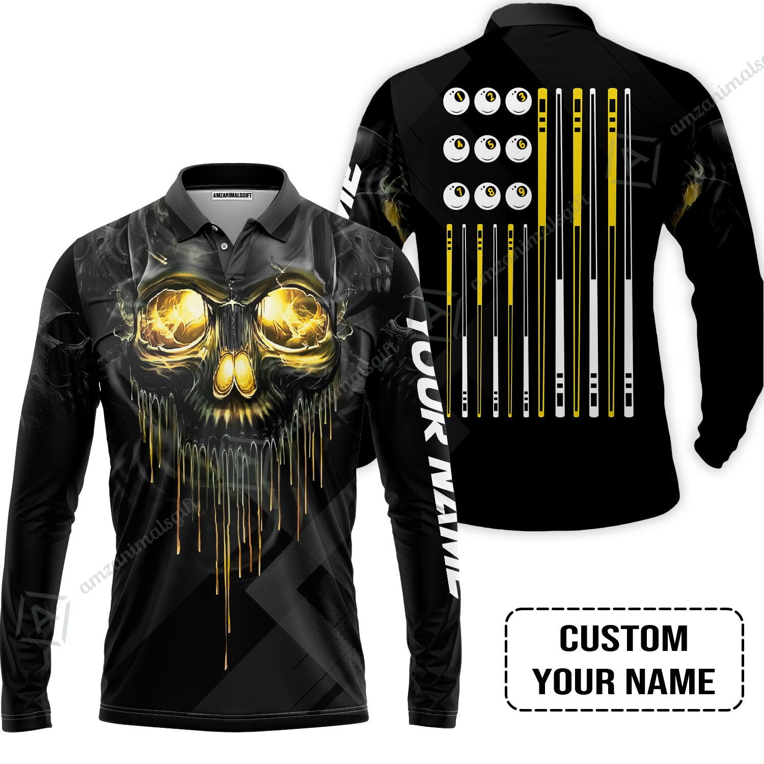 Men Polo Shirt - Billiards Pool Player Skull Custom Polo Shirt, Skull Billiards Shirt For Billiards Players, Personalized Billiards Gift