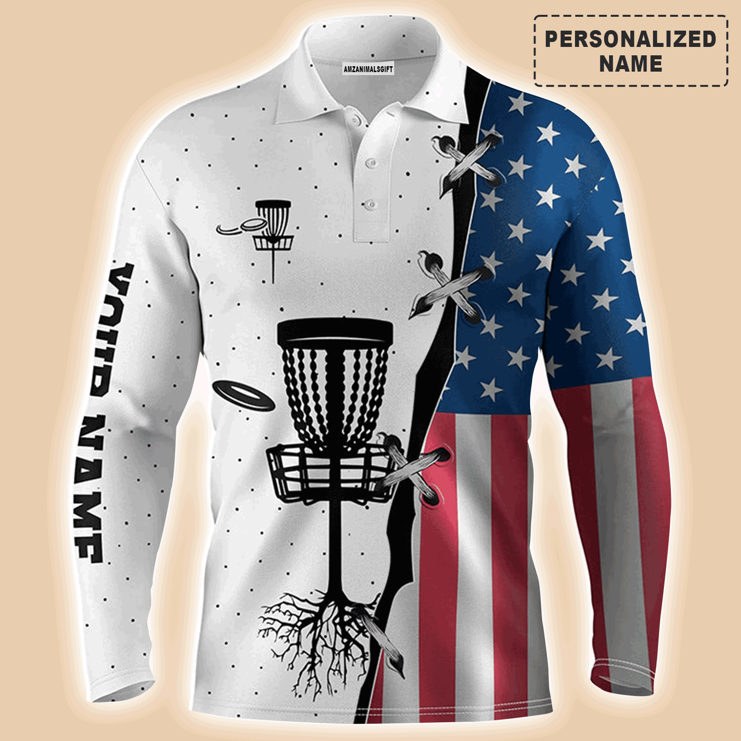 Men's Disc Polo Shirts, Custom Name American Flag Disc Golf Team Apparel - Personalized Gift For Men, Husband, Boyfriend, Golf Lovers