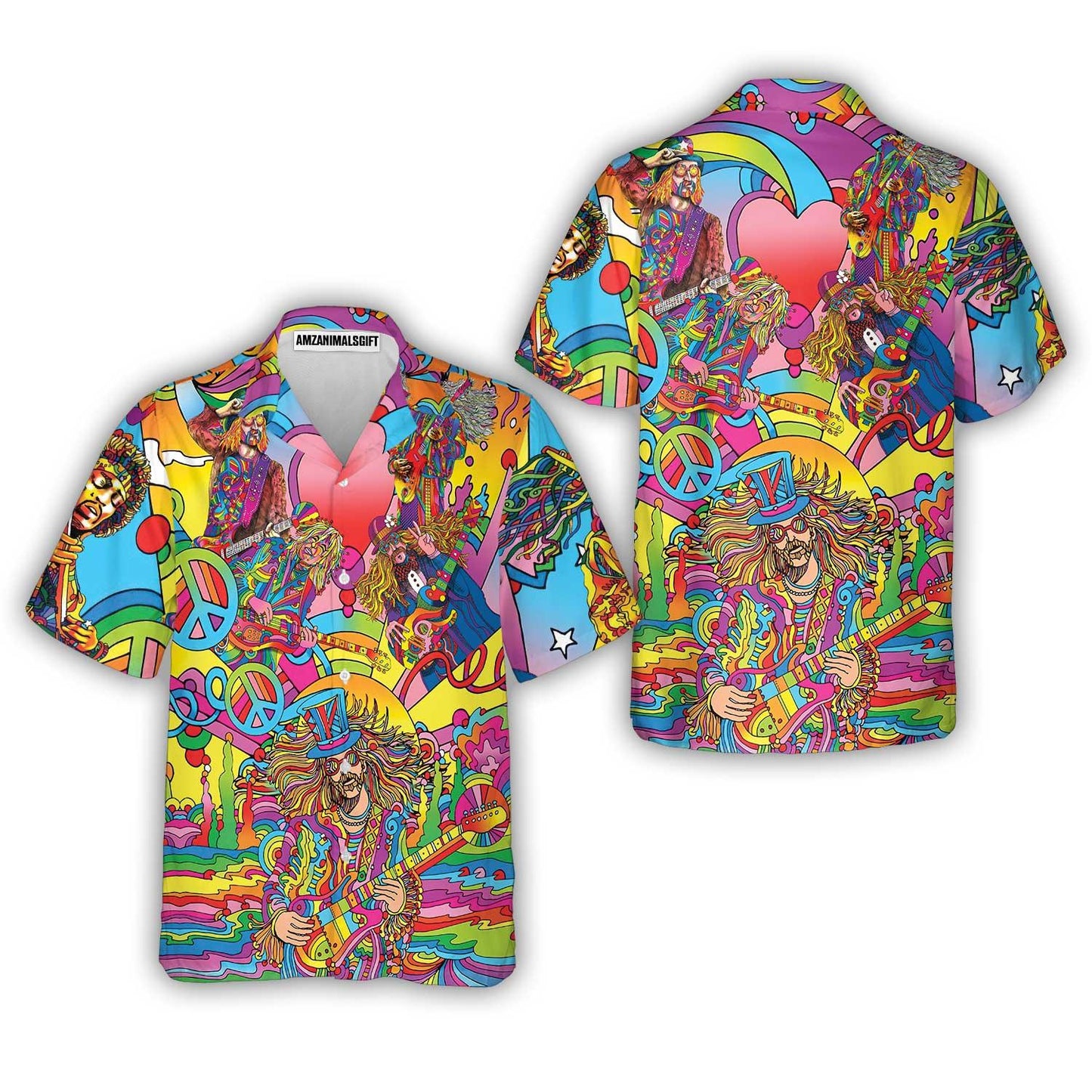 Music Hawaiian Shirt, Music Guitar Psychedelic Hawaiian Shirt, Music Hippie Musician Aloha Shirt For Men And Women - Perfect Gift For Music Lovers.