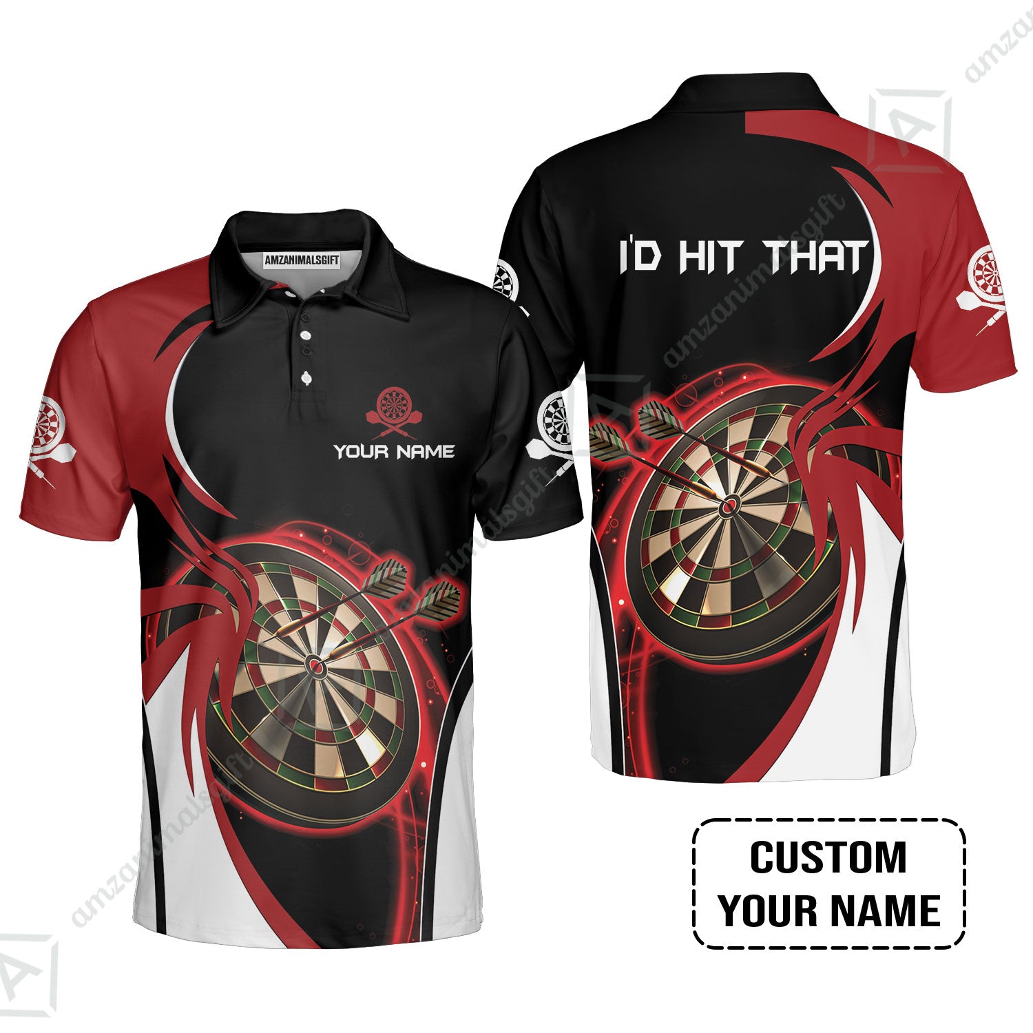 Personalised Darts Men Polo Shirts, I'D Hit That Darts Red Black Background Custom Name Polo Shirts
