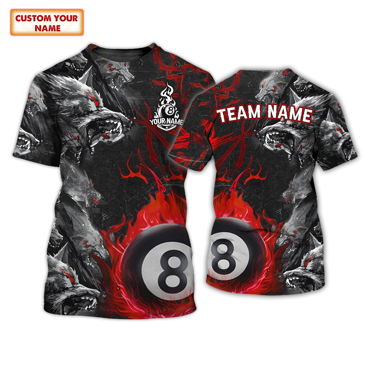 Personalized Billiards 8 Ball Pool Polo Shirt, Wolf Black Red Fire Pool Shirts, Outfit For Billiard Players Tad