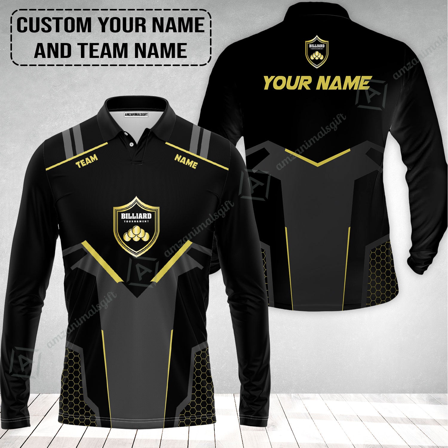Personalized Billiards Long Polo Shirt, Golden Team Billiards Team Custom Shirt For Men