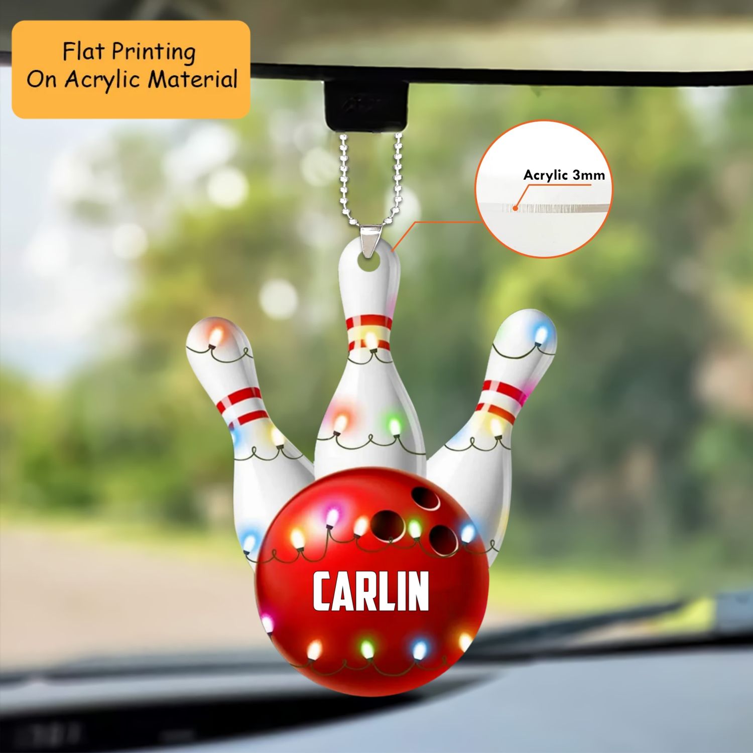 Personalized Bowling Ball Christmas Holding Pins Acrylic Ornament, Bowling Keychain, Car Ornament, Christmas Ornament Gifts