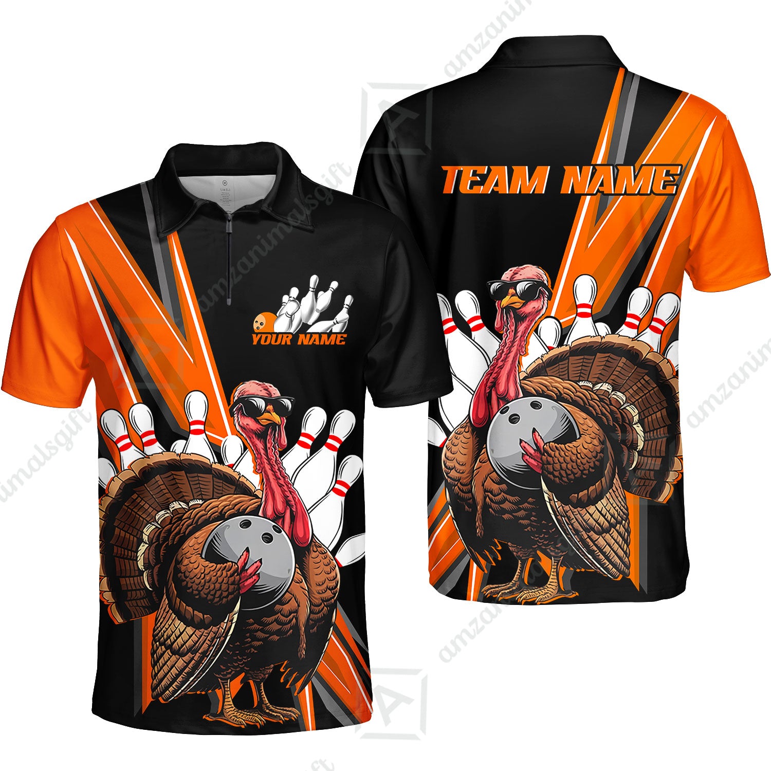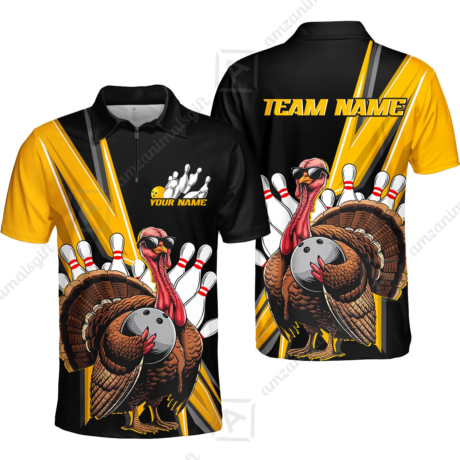 Personalized Bowling Black And Red Awesome Turkey Quarter-Zip Polo Shirt, Thanksgiving Bowling Uniforms With Name, Team Name