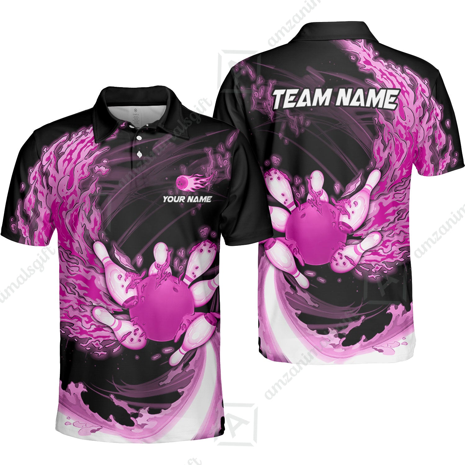 Personalized Bowling Polo Shirt Breath Of Flaming Bowling Ball And Pins Multicolor Option Custom Name, Team Name For Bowlers