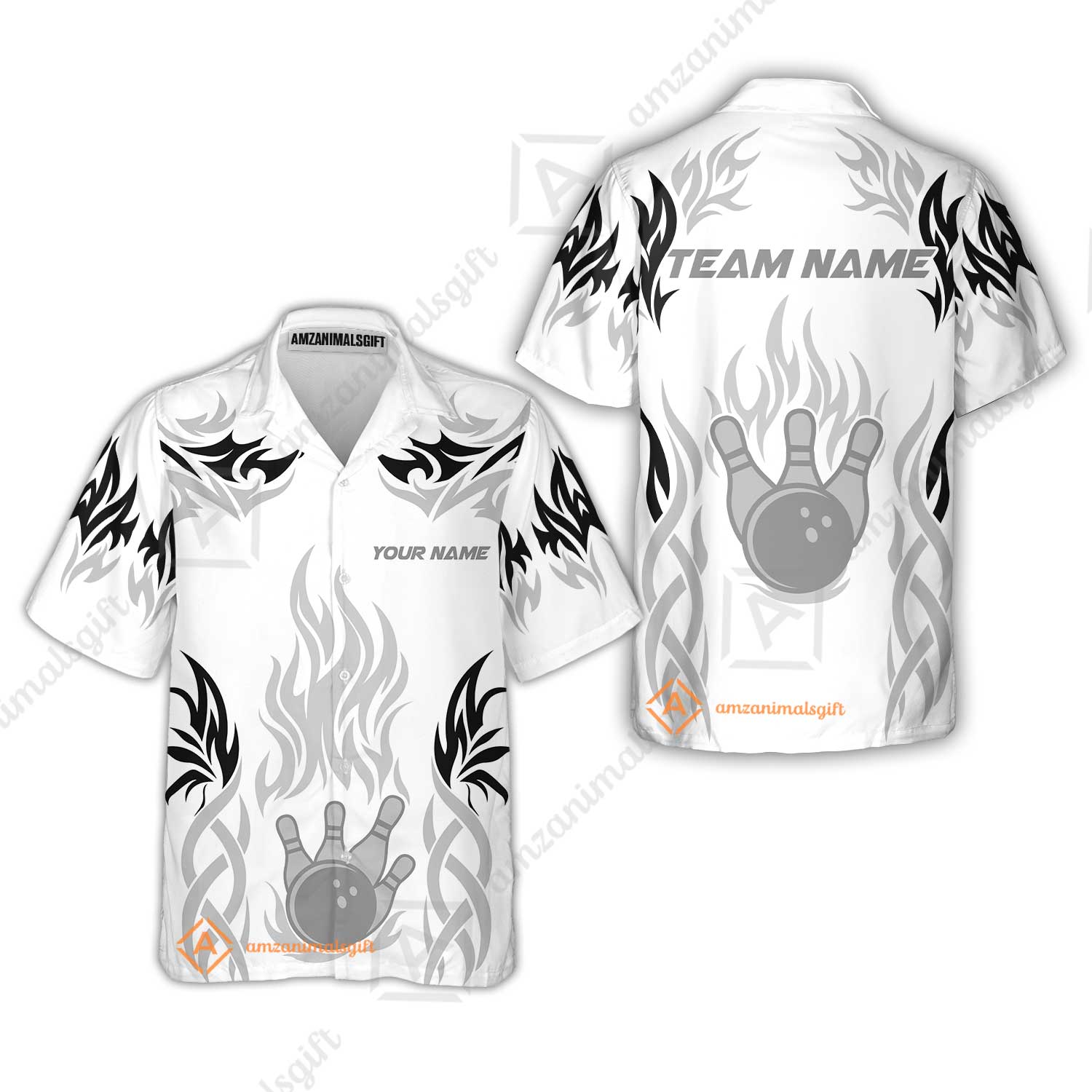 Personalized Bowling Team Hawaiian Shirt, Tribal And Bowling Flame Multi Option Customized Polo Shirt - White
