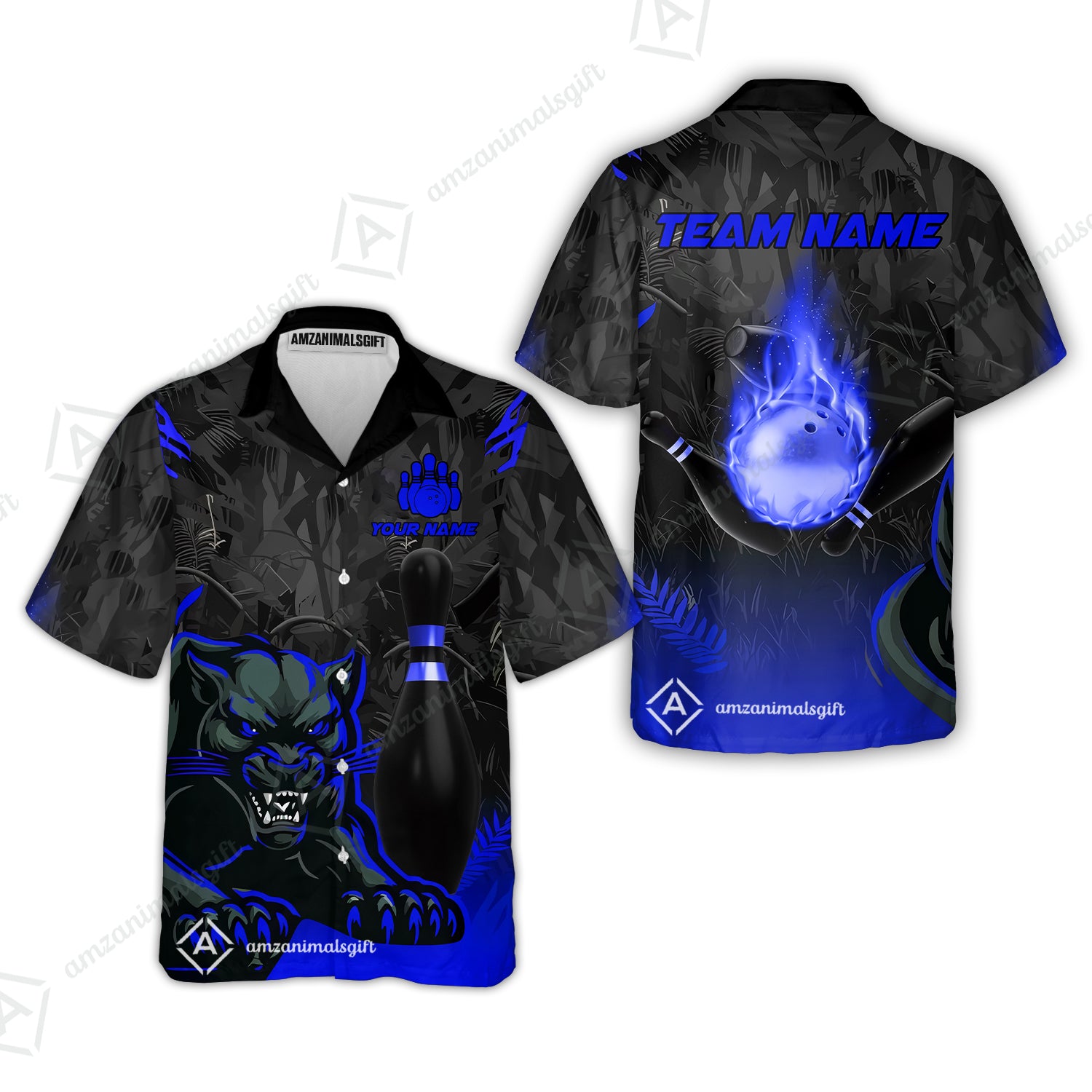 Personalized Bowling Team Hawaiian Shirt With Black Panther And Pin, Custom Name And Team Name For Bowlers
