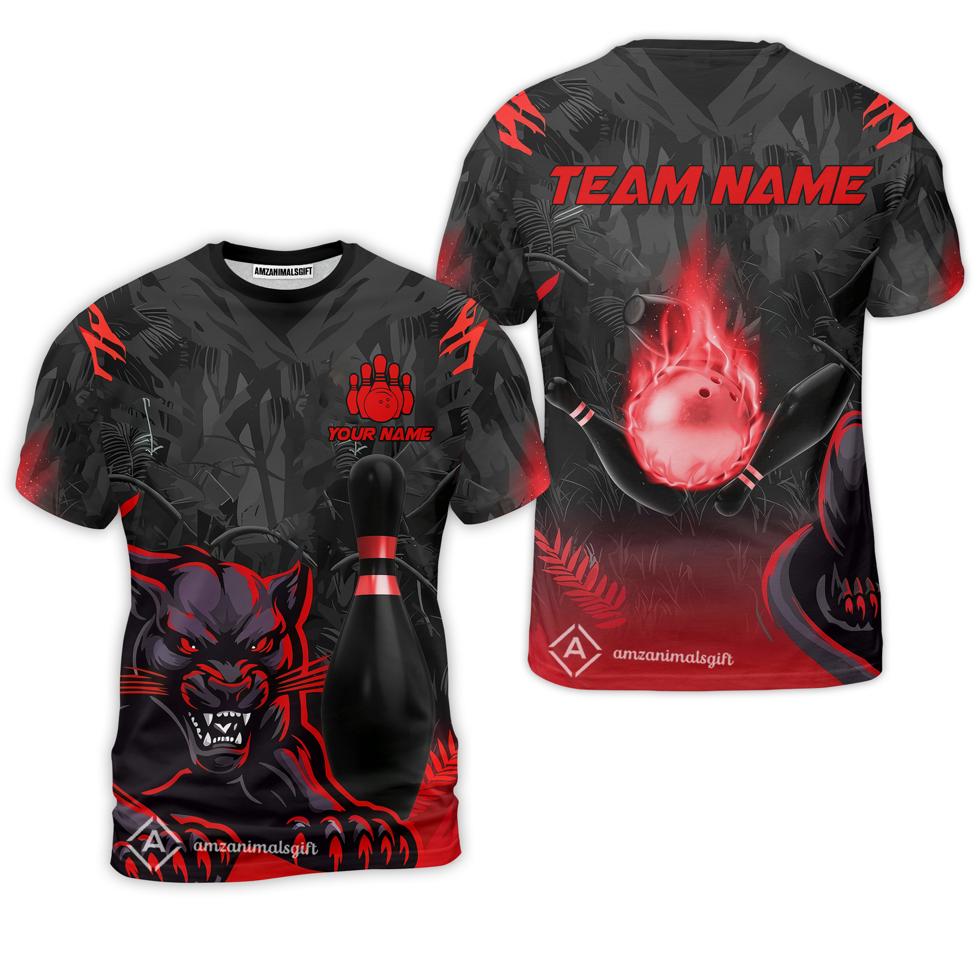 Personalized Bowling Team T-Shirt With Black Panther And Pin, Custom Name And Team Name For Bowlers