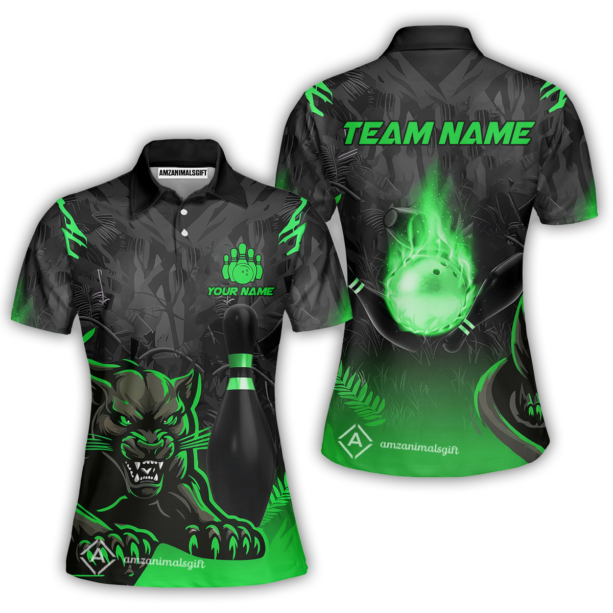 Personalized Bowling Team Women Polo Shirt With Black Panther And Pin, Custom Name And Team Name For Bowlers