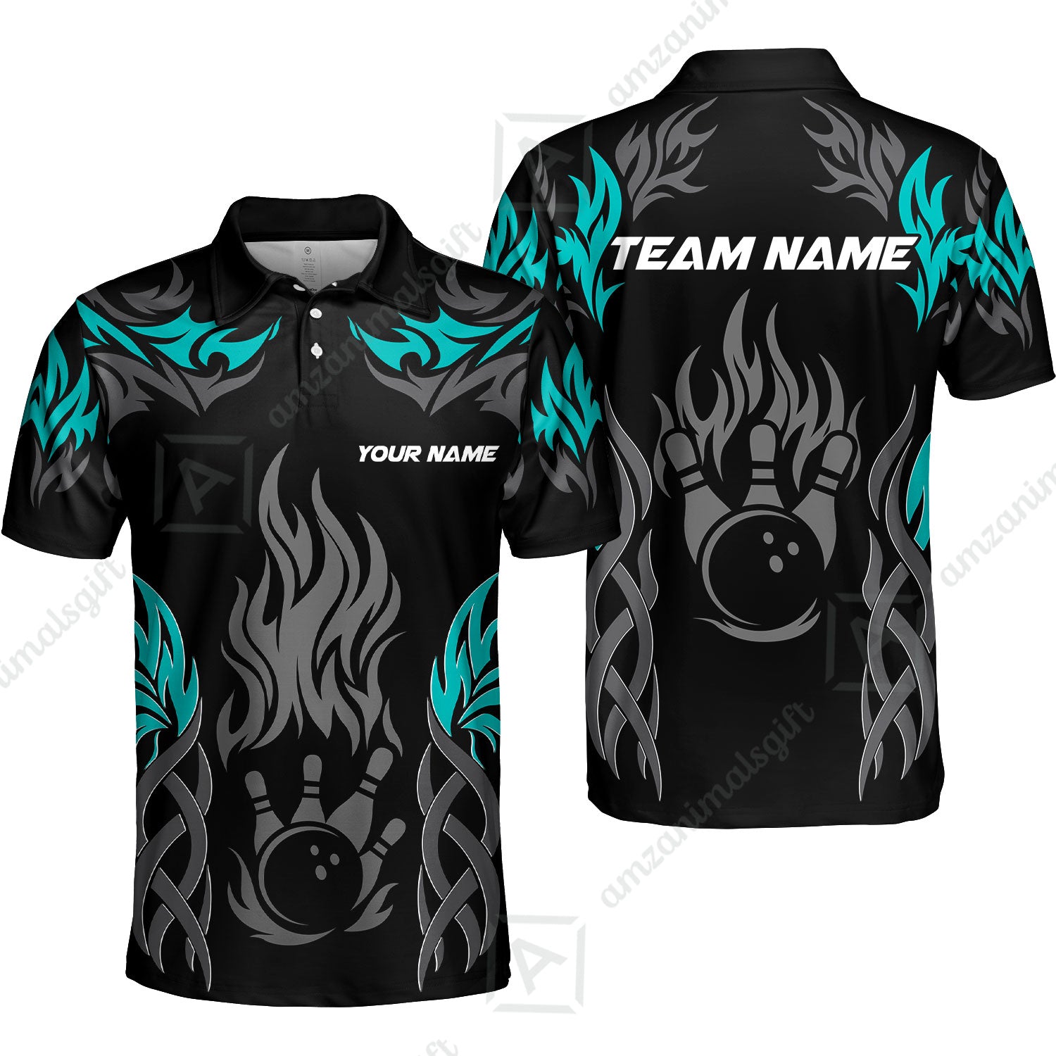 Personalized Bowling Unisex Polo Shirt, Tribal And Bowling Flame Multi Option Customized Polo Shirt - Black