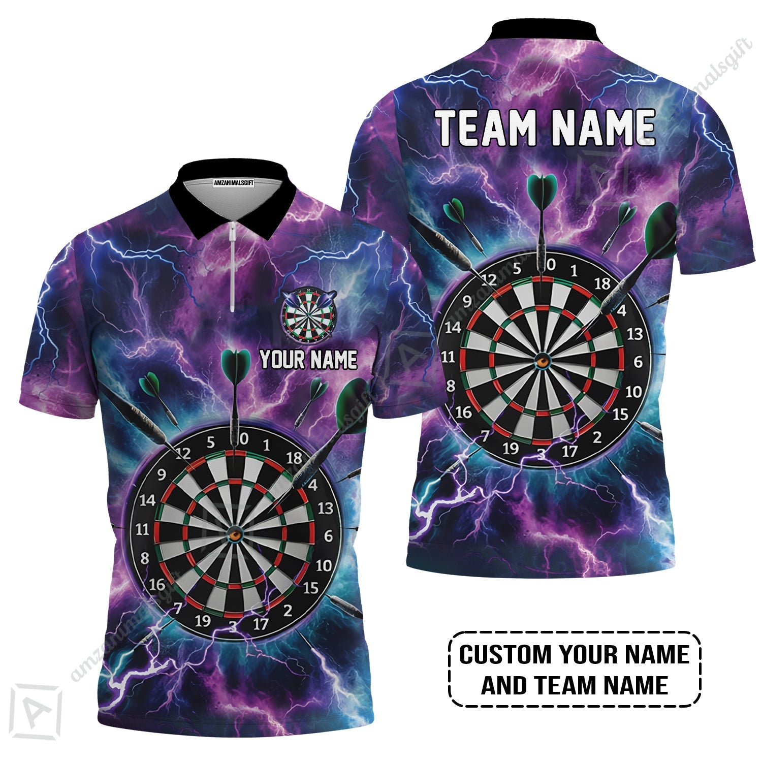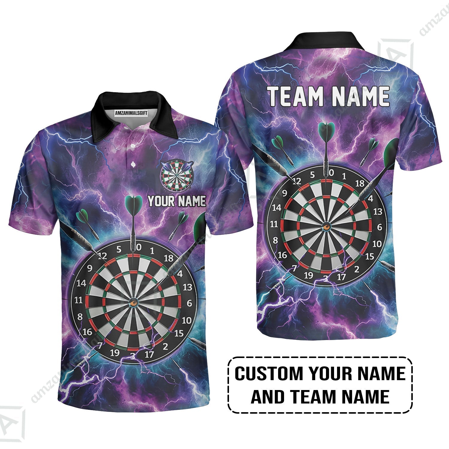 Personalized Darts Long Polo Shirt - Custom Name & Team Name Purple Thunder Lightning Long Polo Shirt