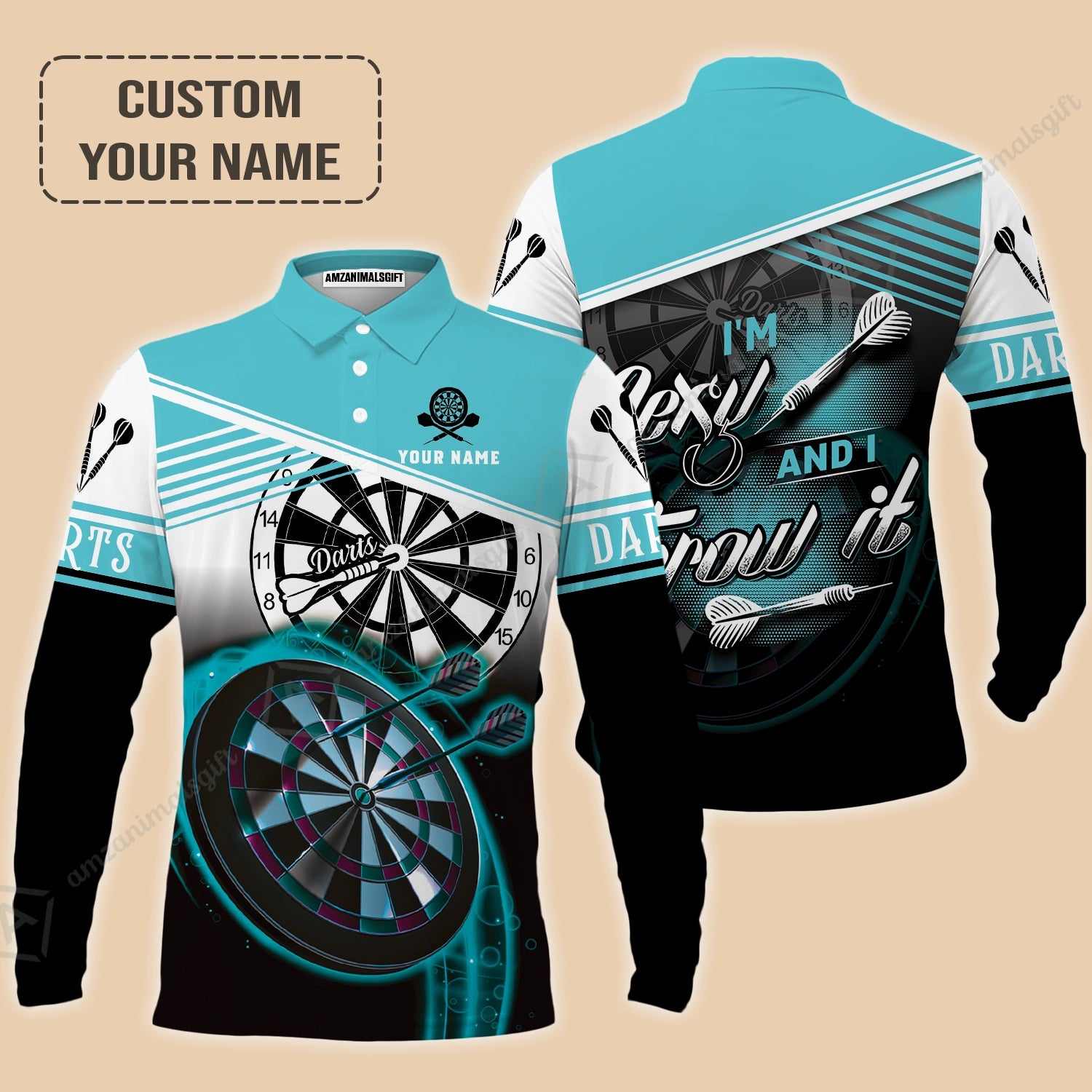 Personalized Darts Long Polo Shirt, Darts Cyan Color Customized Polo Shirt I'm Sexy And I Throw It, Outfits For Darts Players, Darts Team