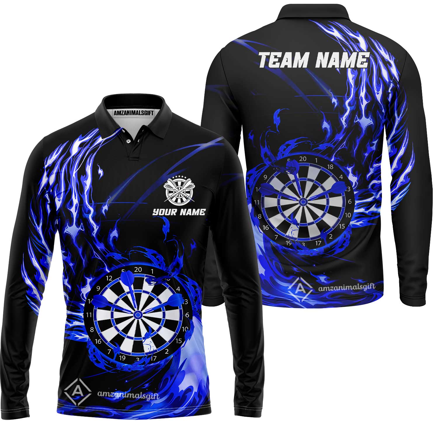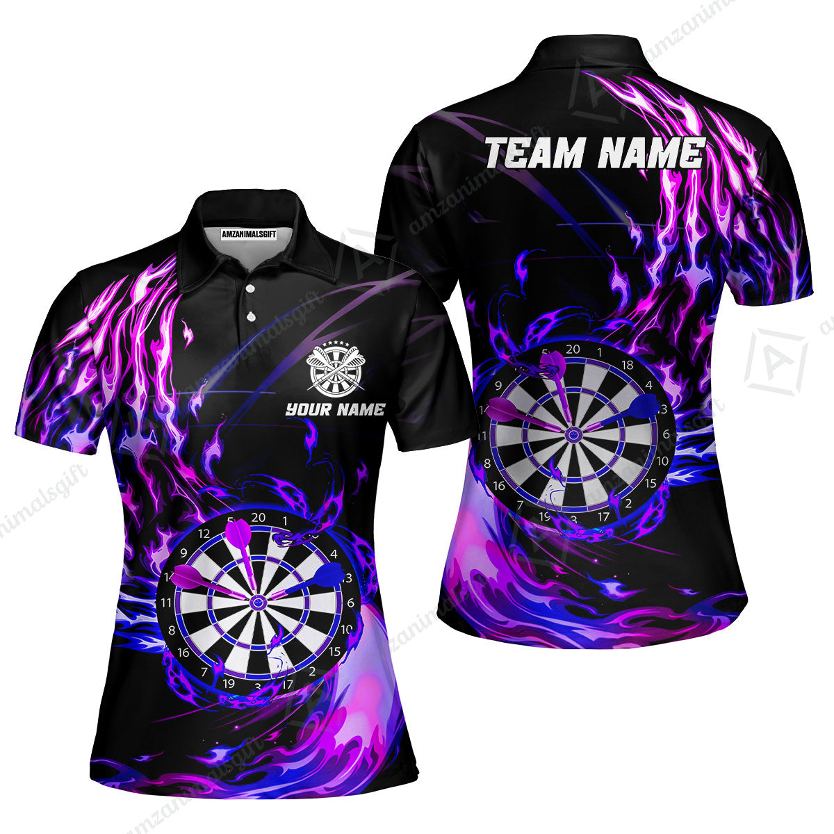 Personalized Darts Women Polo Shirt - Custom Name & Team Name Darts Purple Fire Polo Shirt For Women, Darts Team, Darts Lover