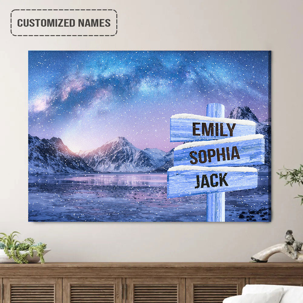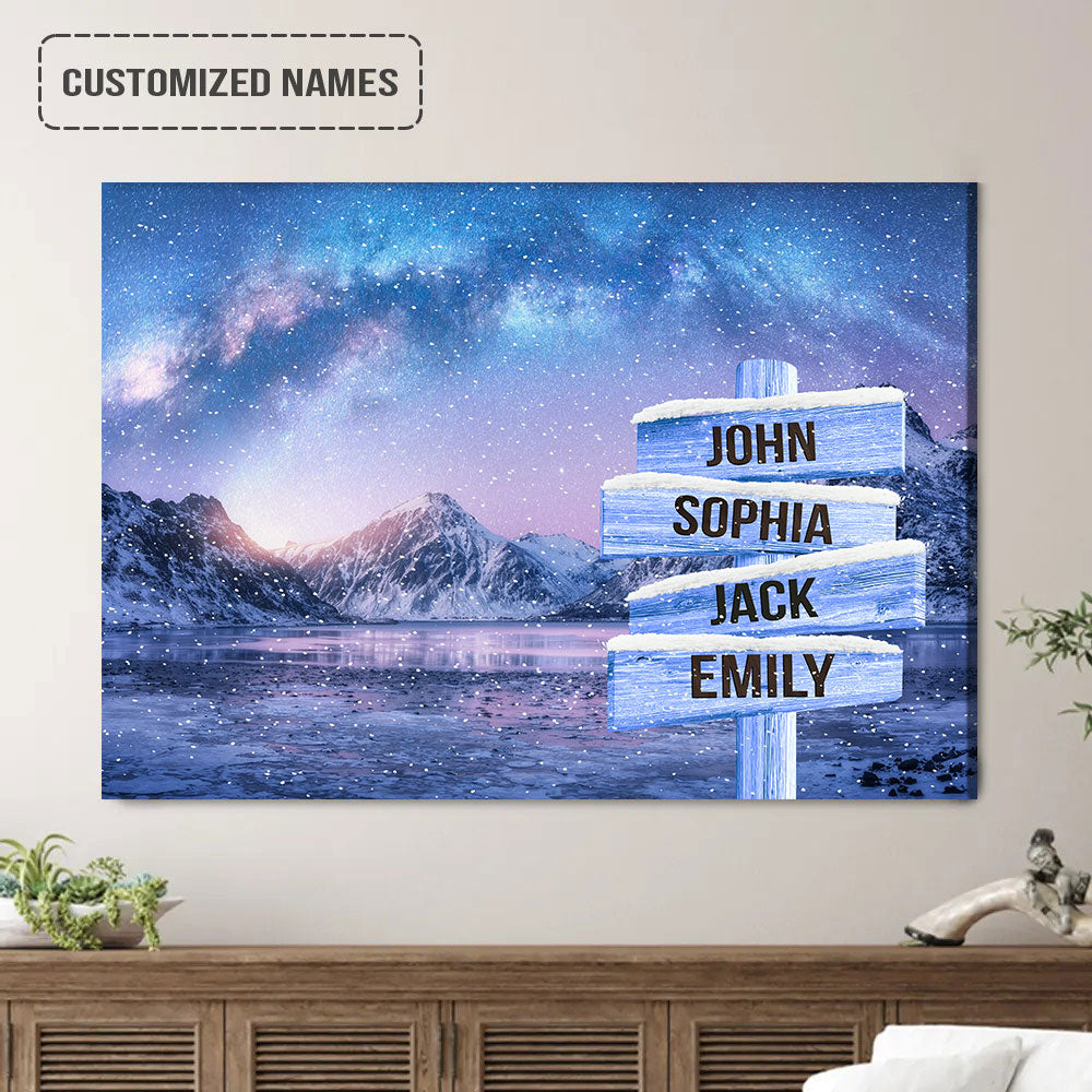 ♥ Personalized Family Street Sign Wall Art Canvas Multi-Names, Milky Way Above Sea And Mountain Landscape Canvas Poster, Perfect Decorations For Home, Kitchen, Room ♥