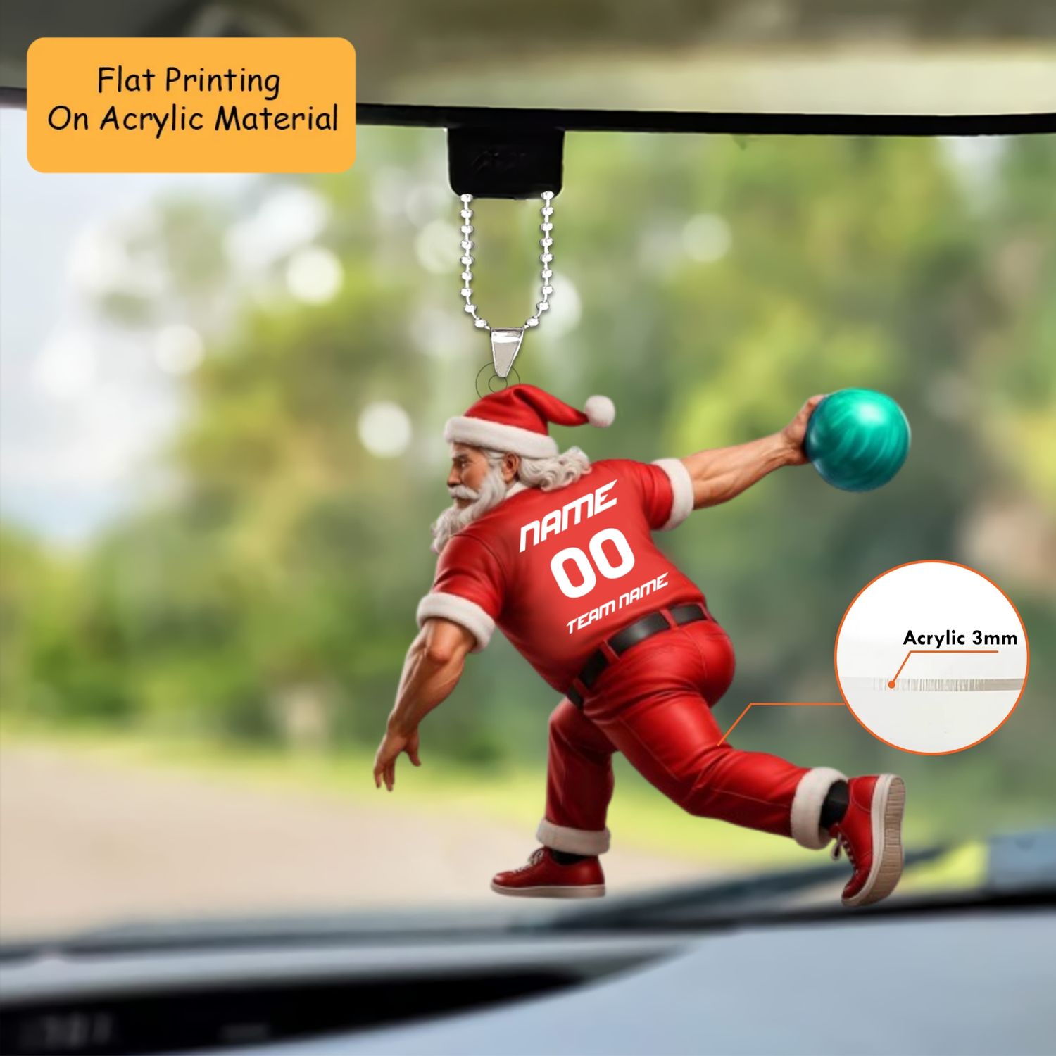 Personalized Santa Bowling Ornament, Bowling Christmas Keychain, Car Ornament, Christmas Ornament Gifts