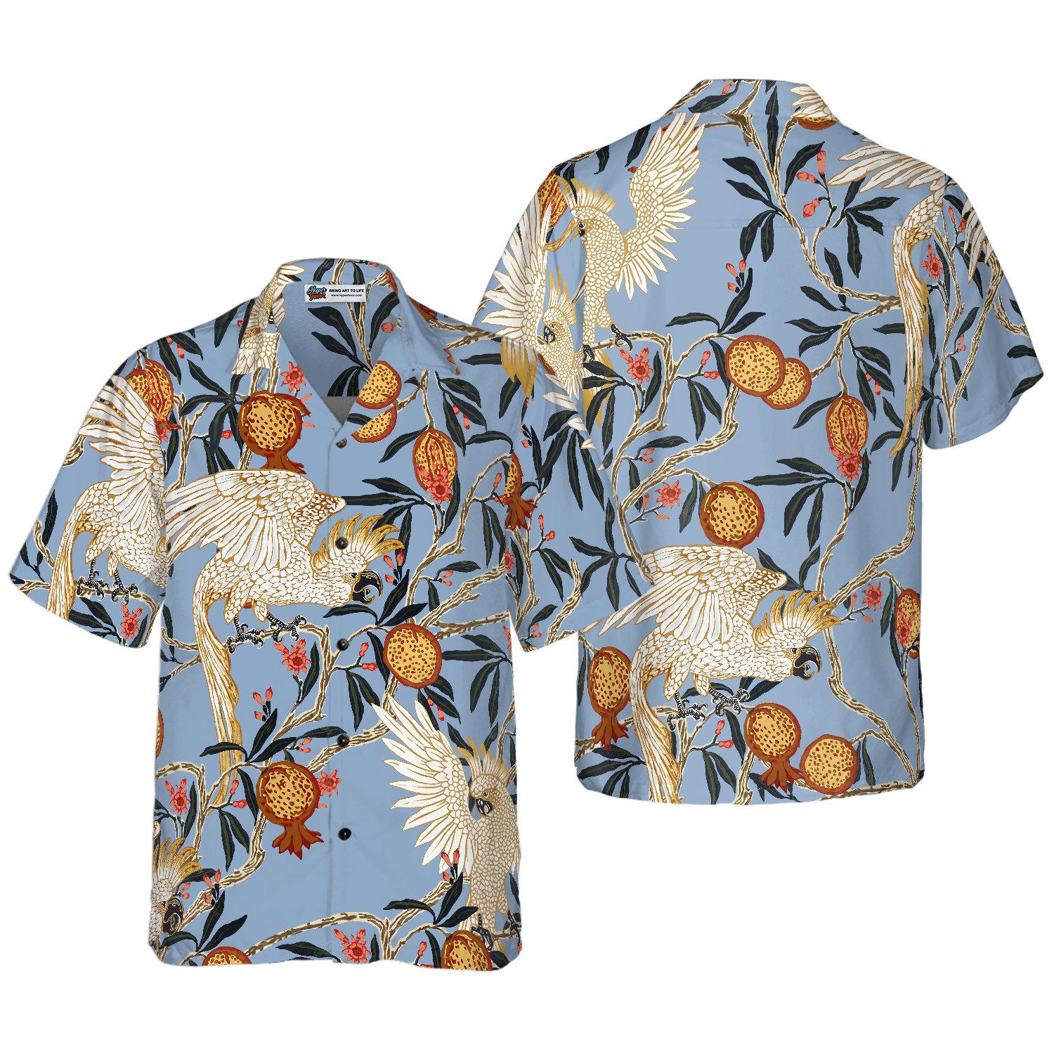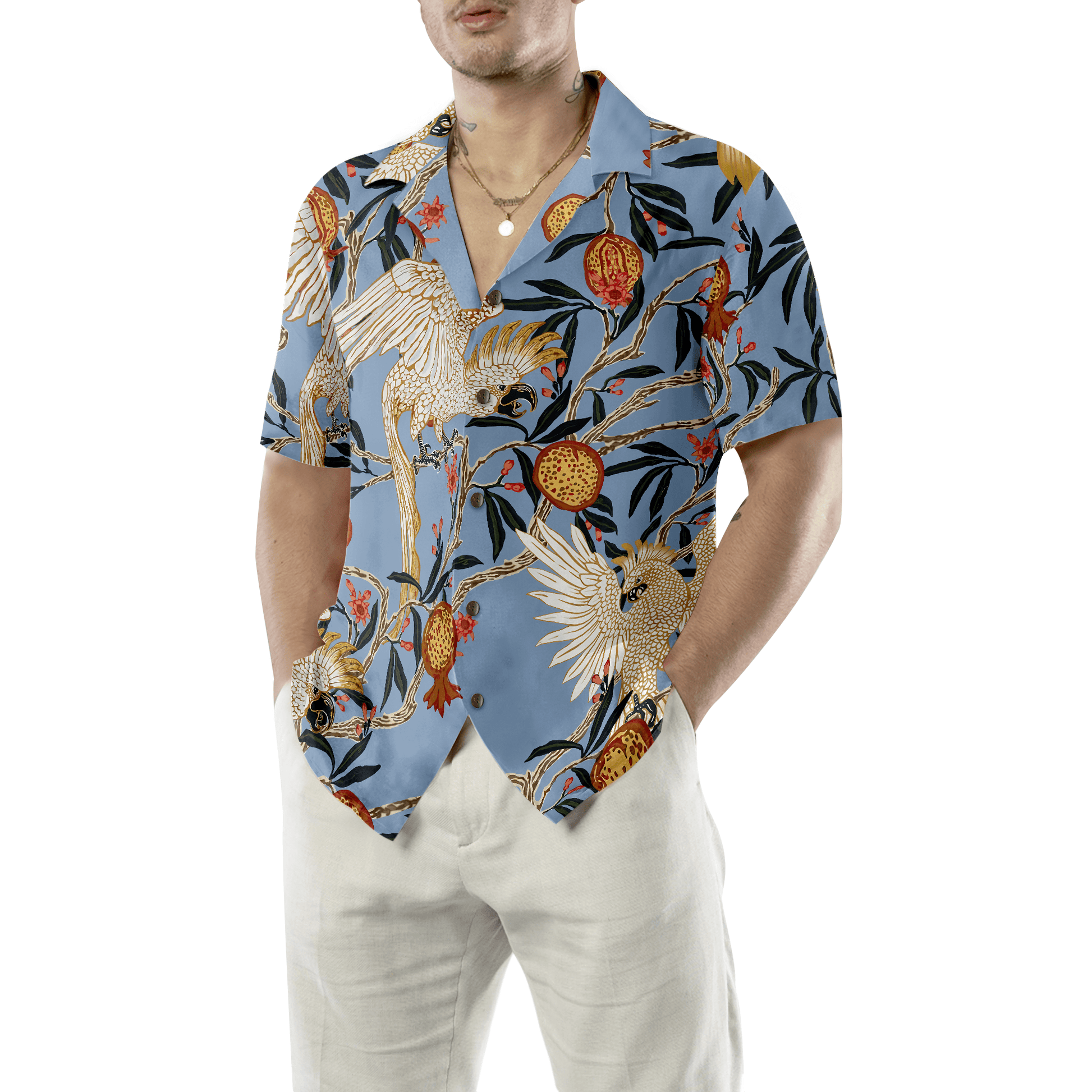 Pomegranates And Cockatoos Hawaiian Shirt, Colorful Summer Aloha Shirts For Men Women, Perfect Gift For Husband, Wife, Boyfriend, Friend