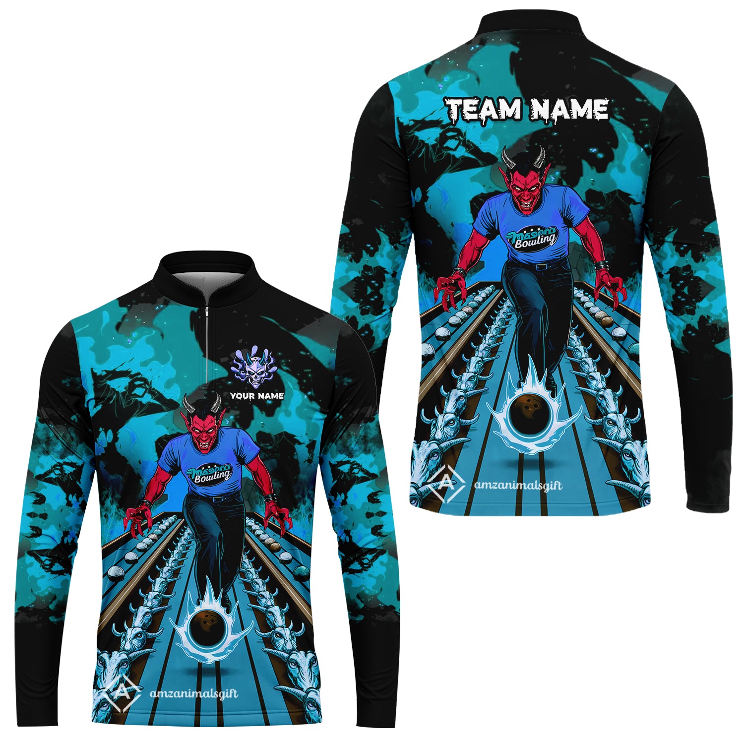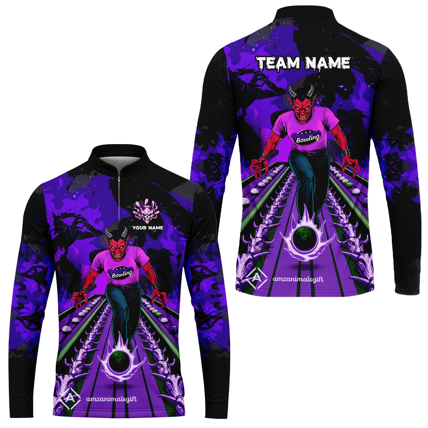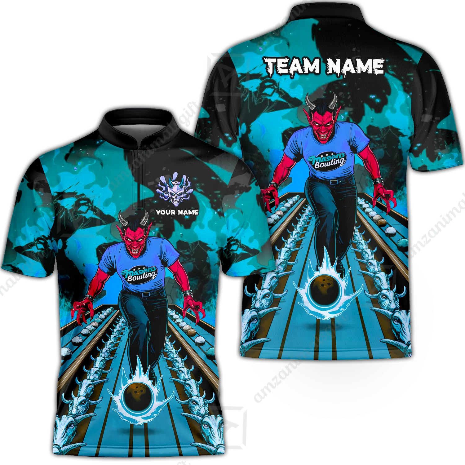 Custom Bowling Team Uniform Jersey Red Demon Bowling Shirt - Bowling Shirt Personalized Name And Team Name