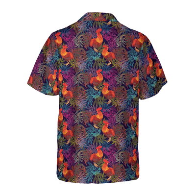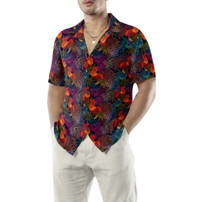 Rooster Hawaiian Shirt, Stylish Rooster Chicken And Leaves Aloha Shirt For Men - Perfect Gift For Men, Husband, Boyfriend, Friend, Family