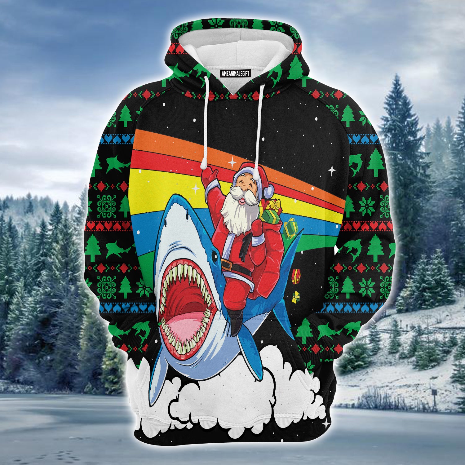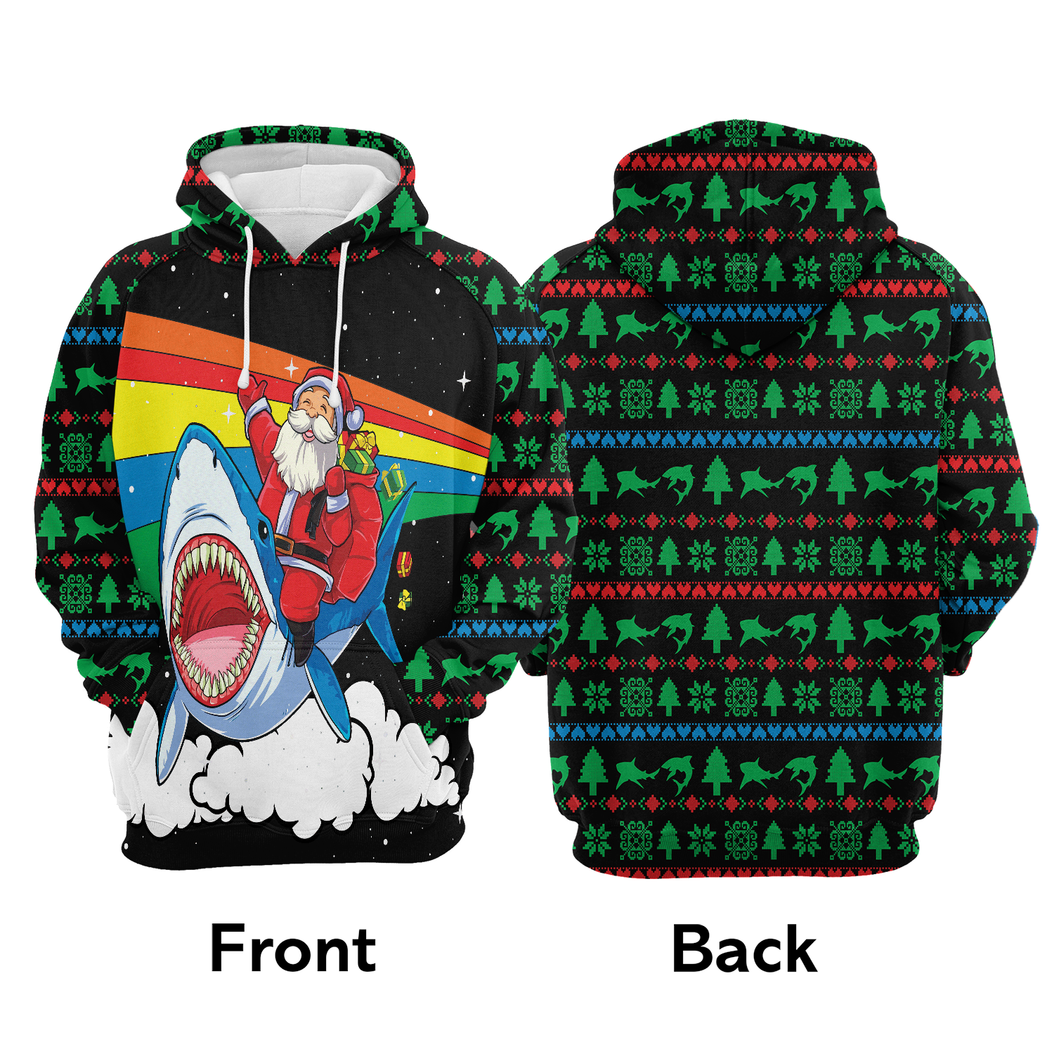 Santa Claus Riding Shark Premium Christmas Hoodie, Funny Christmas Unisex Hoodie For Men & Women - Perfect Gift For Christmas, Friends, Family.